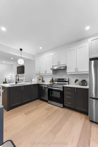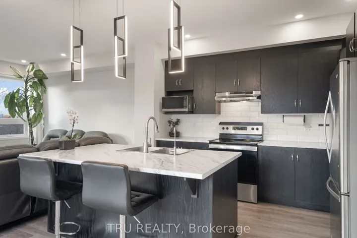 +"PublicRemarks": "Welcome to this practically new and move-in ready stylish end-townhome, built in 2023 and ideally located in a highly desirable neighbourhood backing onto a serene wooded sanctuary. Offering a premium location, this bright and spacious home is filled with natural light from its large windows on two sides of the home.The main floor offers functional design with inside access from the 19 foot garage, the office, laundry room and a rare basement level, providing valuable additional 320 sf of space for storage or future use.The second level features a modern open-concept layout with wide plank hardwood flooring, smooth ceilings, and pot lights throughout the kitchen and living areas. The quality upgraded kitchen includes quartz countertops, modern colour cabinetry, soft-close drawers and cabinets, and a stylish backsplash, flowing seamlessly into a cozy dining area and bright living space. Step out onto the large private balcony and enjoy peaceful views of the surrounding greenery perfect for those bird watchers. Upstairs offers well-appointed bedrooms, including a spacious primary suite with a 3-piece ensuite featuring quartz countertops, high cabinetry, and a wall-in glass shower. A full 4-piece main bathroom and an additional 2-piece powder room add convenience. Custom Silhouette blinds and upgraded doors and hardware are found throughout.With quality finishes, a functional layout, a rare basement, and a premium corner location backing onto green space, cozy front porch facing the natural preserve, this home is an exceptional opportunity. This over 2000 square foot home is Perfect for First-Time Buyers and Downsizes."