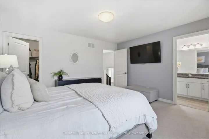 +"PublicRemarks": "** Watch Listing Video ** Welcome to this charming 3-bedroom, 1.5-storey end-unit townhome backing onto mature forest in Orillia's highly sought-after West Ridge community, offering an exceptional blend of comfort, functionality, and natural beauty. The bright and inviting main level features a beautifully finished open-concept living and dining area, perfect for both everyday living and entertaining, with large windows that fill the space with natural light and provide a seamless walkout to a fully fenced backyard showcasing unobstructed views of forest. Thoughtfully designed for convenience, the home features a main floor primary bedroom and laundry, along with a fully finished basement that provides additional living space for growing families or guests. The upper-level loft offers a versatile retreat ideal for a home office, guest space, or creative studio, complete with a renovated dry kitchenette, added electrical, and enhanced privacy with stylish barn doors. Since 2021, the home has seen extensive upgrades including a modernized kitchen with quartz countertops, upgraded sink and faucet, and ceramic backsplash, updated lighting throughout, smart Nest home technology with thermostat, doorbell, and front entry system, and a garage equipped with opener, keypad entry, and added loft storage. The exterior has been enhanced with updated landscaping, new sod, added fencing, and a flagstone patio and stairs, creating an ideal outdoor setting for relaxation or entertaining. Located just minutes from Lake Couchiching, beaches, parks, shopping, dining, and Orillia's vibrant downtown waterfront, with convenient access to Highway 11 and an easy drive to Barrie and beyond, this move-in ready home delivers outstanding value in a family-friendly neighbourhood."