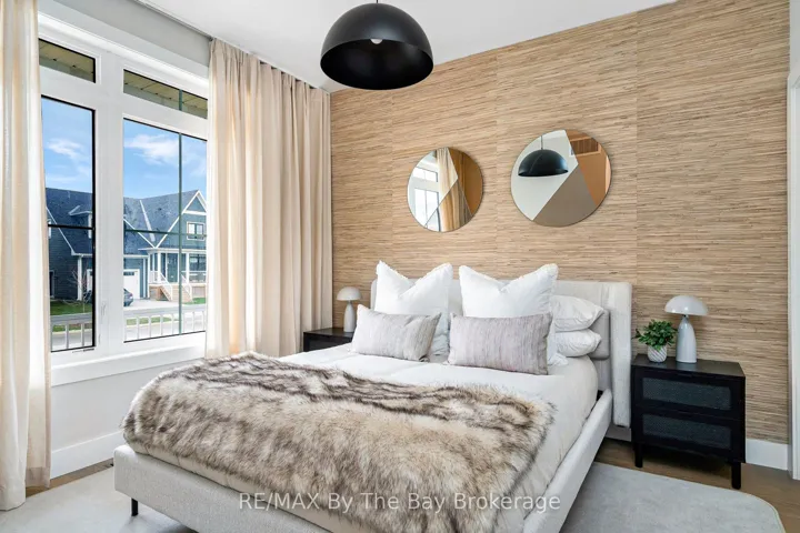 +"PublicRemarks": "Luxurious and stylish, this bungalow showcases exquisite designer details that flow effortlessly from room to room. A striking modern chalet exterior, defined by crisp white and bold black accents, sets the tone. Enter into a welcoming interior, where a warm, curated palette meets thoughtfully integrated artistic elements. The grand main floor impresses with soaring vaulted ceilings, an expansive open-concept layout and engineered white oak hardwood floors. The kitchen highlights a waterfall island, built-in panelled appliances, custom hood range, In Sink Erator and curated lighting. The living room is anchored by a stunning bespoke fireplace surround and enhanced by a built-in Sonos sound system. Retire to the main floor owners suite complete with a spa five-piece ensuite with a soaker tub and glass shower. A second bedroom, bathroom and laundry/mud room with stunning tailored millwork complete this level. Upstairs the loft provides two bright bedrooms and a full bath. The fully finished lower level expands the living space with a generous recreation area, two bedrooms, and a 3-piece bath, bringing the total to six bedrooms and four full baths across more than 3,200 sqft of living space.The heated garage is thoughtfully equipped with ski lockers, offering secure and convenient storage after a day on the slopes. Smart home technology enhances the lifestyle experience, with integrated control of lighting, climate, and security-including water detection alarms and top-tier Hikvision cameras-accessible from anywhere. As part of the Windfall community, owners enjoy exclusive access to "The Shed," a four-season social hub featuring a heated outdoor pool, hot tub, sauna, fitness centre, and gathering spaces. Surrounding trail systems weave through scenic ponds, bridges, and forests, while skiing, golf, shopping, beaches, and fine dining are all just steps away. Four season resort living at its finest! This home must truly be seen in person, book your showing today!"