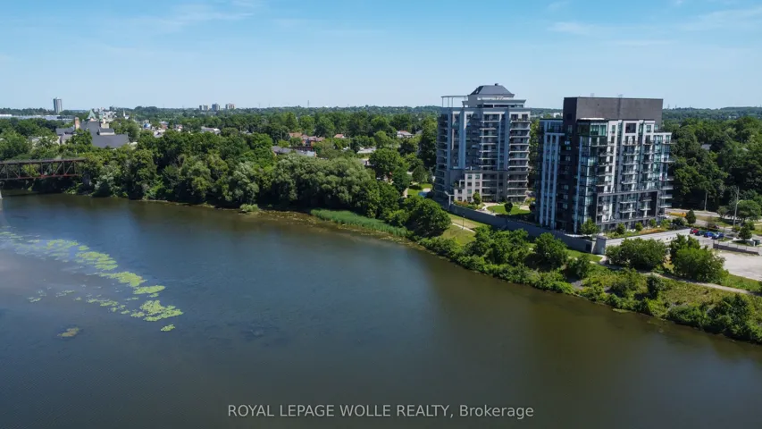 +"PublicRemarks": "Condo living with the "BEST VIEW"! At its finest, this pristine corner unit in the heart of historic downtown Galt offers uninterrupted views of the scenic Grand River. Rarely offered, this suite includes another 140 sq. ft. of private outdoor DOUBLE LENGTH balcony space-ideal for enjoying both sunrises and sunsets over the water and downtown skyline. The open-concept layout allows natural light to flood the space through dramatic floor-to-ceiling windows. This 2-bedroom, 2-bathroom, plus den is completely carpet-free, complete with granite countertops. Enjoy the convenience of in-suite laundry, stainless steel appliances and the bonus of a Den/Office area. This Condo has been recently painted(July 2025), allowing for an easy move-in, and shows immaculately. Several photos have been virtually staged to provide a better visual. Included is one underground parking spot, a private storage locker, and plenty of visitor parking. Residents have access to an array of amenities, including a fully equipped fitness centre, a stylish social lounge, a guest suite, and an expansive outdoor terrace complete with gas BBQs alongside the Grand River. Built in 2015, The Grand Condominiums place you steps away from everything-boutique shops, gourmet coffee, local restaurants, art galleries, live theatre, weekend markets, and the scenic Trans Canada Trail. Commuters will love the quick access to the 401, Hwy 8, and Hwy 7/8, as well as excellent transit options."