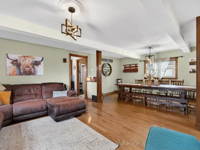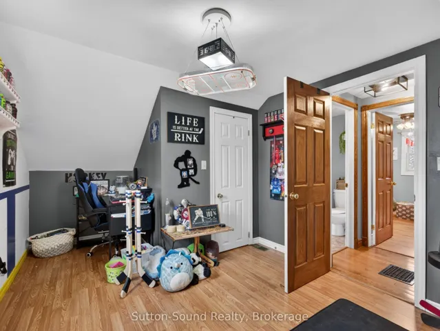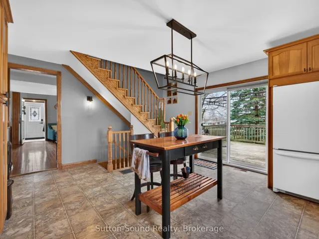 +"PublicRemarks": "Welcome to Kilsyth-just 10 minutes from Owen Sound-where country charm meets everyday convenience. Enjoy the best of both worlds with peaceful rural living, natural gas, fibre optics, and lower Georgian Bluffs taxes. Set on a generous 65 x 175 ft lot, this property is bathed in southern sun and offers an expansive backyard designed for family living and entertaining. Kids will love the dedicated play area, while the detached shop with loft space provides the perfect spot for hobbies, projects, or additional storage. Step inside through the inviting four-season entryway and discover a home filled with warmth and space. Hardwood floors and updated windows create a bright, welcoming atmosphere throughout. The main floor features a convenient side entry, a 4-piece bathroom, and a spacious kitchen with rich cabinetry that flows seamlessly into the living area. Step out through the large sliding doors onto an oversized deck-ideal for entertaining or relaxing under the stars.Upstairs, you'll find three comfortable bedrooms and a convenient 2-piece bath. The lower level offers a cozy recreation room with walkout access to the backyard. This home offers a rare blend of space, comfort, and lifestyle-perfect for families or anyone seeking the serenity of country living without sacrificing proximity to town amenities."