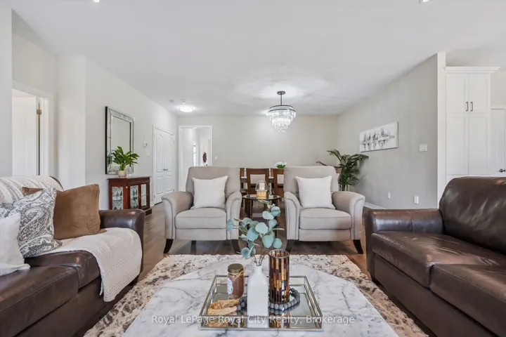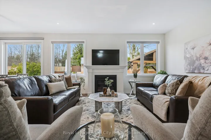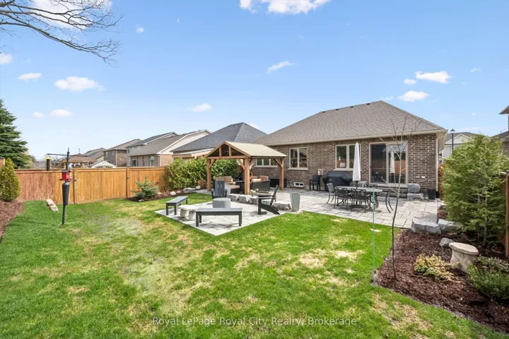 +"PublicRemarks": "Welcome to 108 Harpin Way E, a beautifully appointed executive bungalow offering 3,000 sqft bright, spacious, and thoughtfully designed finished living throughout. Beautiful front landscaping featuring armour stone and stone steps creates a striking first impression and enhances the home's curb appeal. The barrier free main floor showcases wide plank hardwood flooring and elegant pot lights, creating a warm and inviting atmosphere. The open-concept layout seamlessly connects the living, dining, and kitchen areas-perfect for both everyday living and entertaining. The chef-inspired kitchen is a standout feature, complete with a large island, ample storage, and a stylish herringbone backsplash. From here, step out to the fully professionally landscaped backyard, with a 12 ft x 14 ft solid cedar hardtop patio gazebo and a wood fire patio, providing a lovely extension of your living space. The main level also hosts a luxurious primary suite with serene backyard views and a spa-like 5-piece ensuite. A second bedroom with its own 4-piece bathroom offers comfort and privacy for guests or family members. Downstairs, the bright and spacious rec room adds valuable living space, highlighted by a cozy fireplace-ideal for relaxing evenings. The lower level is completed by a third bedroom, a dedicated office, and an additional bathroom, making it perfect for growing families or those working from home. Located in a family-friendly neighbourhood just minutes from downtown Fergus, schools, and parks, this home offers the perfect blend of style, comfort, and convenience, with the added benefit of being close to Fergus's new hospital."