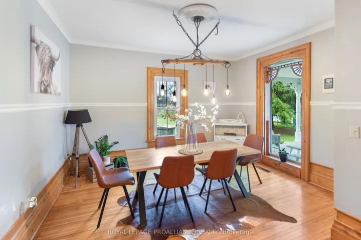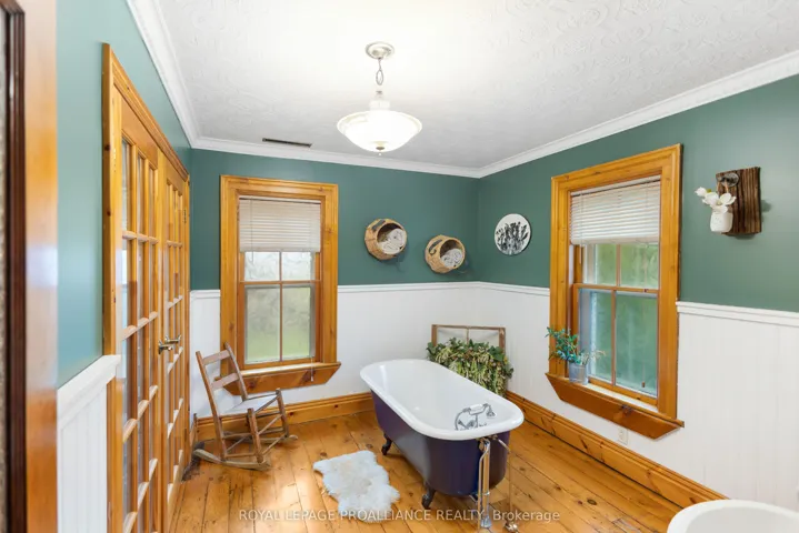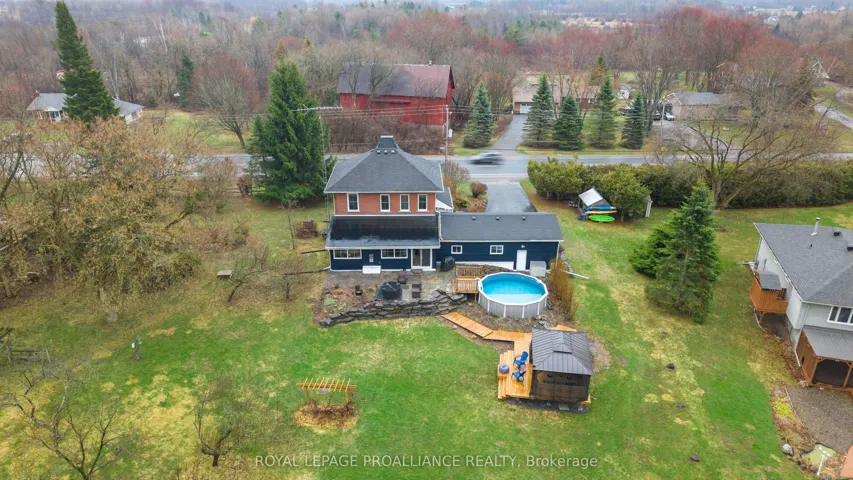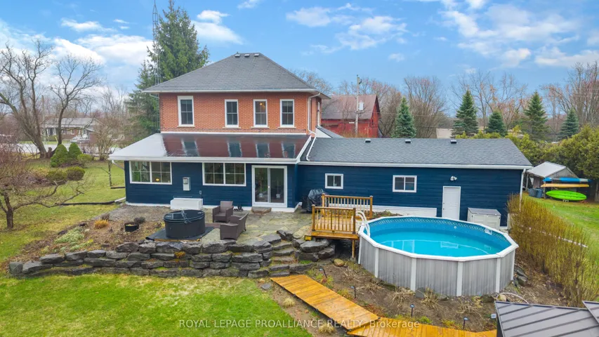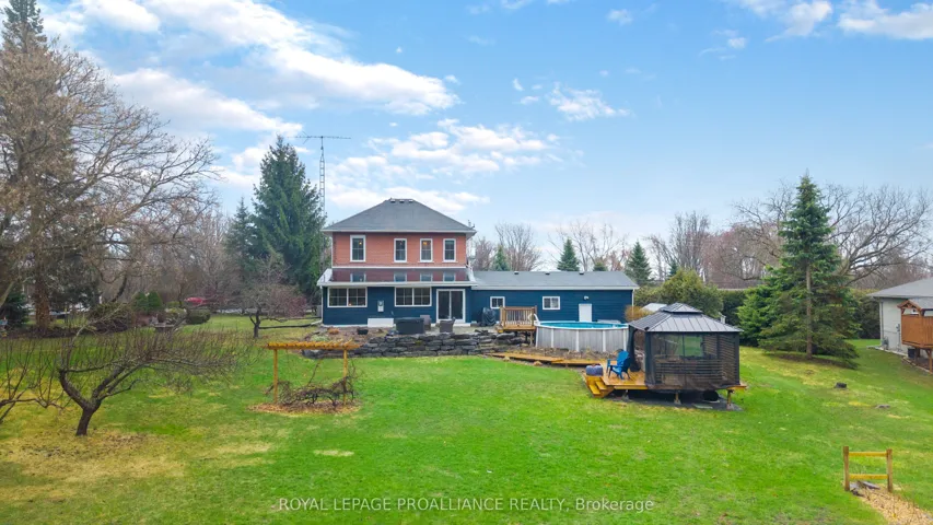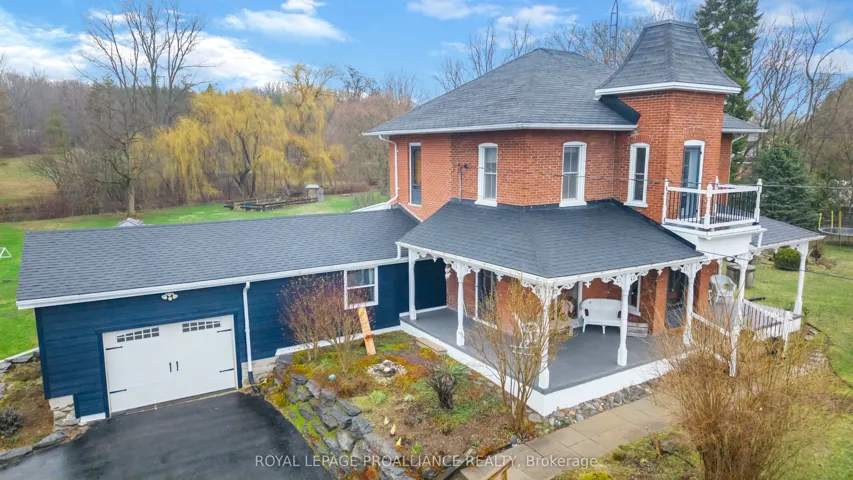 +"PublicRemarks": "If you've been searching for a lovingly maintained century home filled with character, charm, and space, this is the one. From the moment you arrive, you're welcomed by beautifully landscaped gardens leading to a picturesque covered porch, an inviting introduction to what awaits inside. Step through the front door and experience timeless details that have been thoughtfully preserved. The main floor offers a spacious living room and dining room, both positioned at the front of the home, showcasing its natural character and warmth. This level also features a well-appointed kitchen, convenient 2-piece bath, and a main floor bedroom. At the rear of the home, you'll fall in love with the stunning family room, complete with an abundance of windows, a cozy fireplace, and custom shelving, an ideal space to relax and unwind. Step outside to your own private retreat. Set on approximately 3 acres, the backyard is truly a dream, featuring a large deck, above-ground pool, gazebo area, tranquil water feature, lush gardens, a vegetable garden, and even a charming barn currently home to two pigs. A peaceful stream meanders through the property, adding to the serene, country-like setting. Upstairs, you'll find three generously sized bedrooms and a full 3-piece bathroom, providing plenty of space for the whole family. The basement offers a laundry area and a unique touch with a one-of-a-kind bathroom featuring natural exterior stone incorporated into the walls, providing an unforgettable design element. This property is a rare blend of historic charm, modern comfort, and outdoor beauty-ready to welcome its next proud owner."
