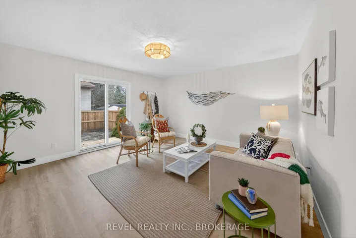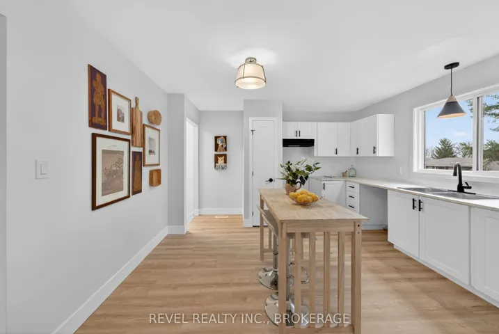 +"PublicRemarks": "Welcome to this beautiful 2 storey home located in Kingston's desirable East End, just minutes from CFB Kingston. This move in ready property offers a smart layout, comfort, and plenty of space for family living. The main floor features a bright open concept design with vaulted ceilings that create a spacious feel. The living room includes laminate flooring, while the functional kitchen offers plenty of cupboard space and a convenient eating bar. The dining and living areas flow nicely together, perfect for everyday living and entertaining. You will also find a bright main floor office, a 2 piece bathroom, and inside entry from the garage. Upstairs, the home offers three comfortable bedrooms, including a large primary bedroom with a walk in closet and private ensuite bathroom. Two additional bedrooms and a full main bathroom complete this level, providing space for the whole family. The lower level is fully finished and includes a rec room, a fourth bedroom, and a laundry area, offering extra space for guests, hobbies, or a growing family. Step outside to enjoy the fully fenced backyard with a 14 x 16 deck, a storage shed, and a gas BBQ connection. The BBQ is and shed are included in "as is" condition, making outdoor living even easier. Recent updates include a furnace (2026), front office flooring 2026, front porch aluminum railing and posts (2020), concrete sidewalk (2020) and roof (2018). Located close to schools, parks, shopping, and all East End amenities, this home offers both convenience and lifestyle."