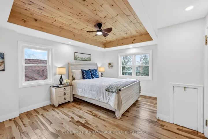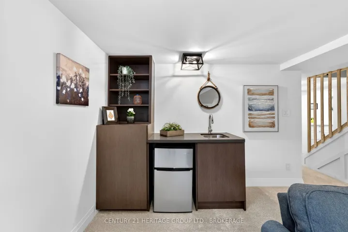 +"PublicRemarks": "Tucked into the heart of Kingston, just minutes from downtown, Kingston General Hospital, St Lawrence College and Queen's University, this beautifully restored 1.5-storey home blends charm, comfort, and modern design. Step inside to a bright, inviting main level where every detail has been carefully considered. The galley-style kitchen features new cabinetry, quartz countertops, and all new appliances including stove, refrigerator, microwave, pot filler, and dishwasher. A cozy breakfast nook is perfect for morning coffee, while the living area with electric fireplace creates a warm atmosphere. Walk out to a deck-ideal for entertaining or relaxing. A convenient powder room near the back entrance adds everyday functionality. Upstairs offers three well-appointed bedrooms. The primary suite features a recessed natural wood ceiling and dual closet spaces. Each bedroom includes thoughtful storage, and a beautifully finished four-piece bathroom completes the level. The lower level continues to impress with a spacious laundry room and versatile secondary living area featuring a second electric fireplace and wet bar with bar fridge. A full bathroom with thermal heated floors and a heated towel rack and mirror adds a touch of everyday luxury. Outside, enjoy ample additional parking and a detached one-car garage with bonus studio space-complete with in-floor heating, fireplace and air conditioning-perfect for a home office, gym, or creative space. Located in a sought-after location minutes from Pladec Day Care Centre and in the Rideau Public, and Loyalist Collegiate and Vocational Institute School catchments. This home offers exceptional living in a central neighbourhood. More than a home-it's a lifestyle upgrade. Book your private showing today."