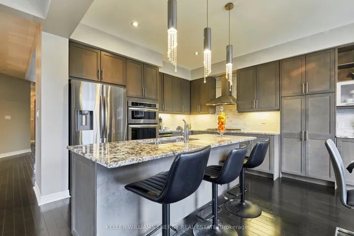 +"PublicRemarks": "Welcome to this exceptional executive residence, perfectly nestled on a coveted pie-shaped lot backing onto a private ravine-offering a rare blend of luxury living and natural serenity. This stunning home has five spacious bedrooms and five beautifully appointed bathrooms, and boasts a bright, open concept main floor all complemented by gleaming hardwood floors throughout.designed for both everyday living and elegant entertaining, the chef-inspired eat-in kitchen features an oversized island with breakfast bar, granite countertops and high-end appliances with a seamless walk-out to your own private backyard oasis. The inviting family room showcases a sophisticated stone fireplace, while separate living and dining rooms provide refined spaces for hosting family gatherings.The second level offers your primary retreat complete with a spa-like 5-piece ensuite and a large walk-in closet. Three additional spacious bedrooms include a convenient shared 4-piece bath between bedrooms two and three. A versatile second-floor office/media space is ideal for working from home. The upper level also features a fifth bedroom with a dream walk-in closet and dressing room, complemented by an additional family room-perfect for extended family or private guest quarters.The finished walk-out basement is an entertainer's dream, featuring a large wet bar, expansive games area and a cozy gas fireplace all opening to the spectacular backyard.Over $300,000 in professional landscaping has transformed the outdoor space into a true resort-style retreat. Enjoy a heated saltwater in-ground pool with a breathtaking waterfall cascading over natural stone, an expansive patio designed for seamless indoor-outdoor living, and a fully equipped outdoor kitchen-perfect for hosting unforgettable summer events. This is more than just a home-it's a private escape designed for those who value space, elegance, and endless entertaining."