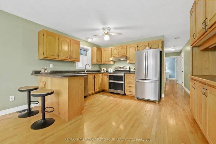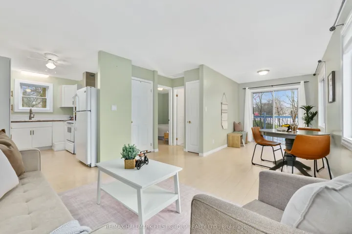 +"PublicRemarks": "Set in a quiet community just steps to Rice Lake, this versatile bungalow with attached garage and self-contained apartment offers exceptional flexibility for multi-generational living, income potential, or easily defined separate living spaces and fibre internet for seamless connectivity. The main level features a bright, inviting living room with a large front window, filling the space with natural light. A carpet-free layout flows seamlessly into the open dining area and kitchen, where a walkout extends your living space outdoors, perfect for summer entertaining. The kitchen is thoughtfully designed with stainless steel appliances, warm wood cabinetry, a breakfast bar, and a dedicated coffee station. The main floor continues with a primary suite complete with double closets and a private ensuite, along with two additional well-appointed bedrooms, and full bathroom, with the convenience of main floor laundry. Downstairs, the partially above-grade finished lower level expands your living options with a full kitchen offering ample cabinet and counter space, a generous rec room with room for games or dining, two additional bedrooms, and plenty of storage or potential office space. The self-contained auxiliary apartment features its own bright, open-concept living area, a dining space with a walkout, and a well-equipped kitchen with matching appliances, and a window over the sink. With one bedroom and one bathroom, it's ideal for guests, tenants, or in-laws. Outdoors, enjoy a private retreat with a spacious deck, a partially fenced yard, a fire pit, and a tranquil pond at the front of the home, surrounded by mature gardens and trees, adding privacy to the property. Located just moments from the marina, lake access, and beach, this property offers the perfect blend of comfort, functionality, and year-round recreation. Ideally located halfway between Peterborough and the 401, Bewdley provides convenient commuting with year-round restaurants and amenities."