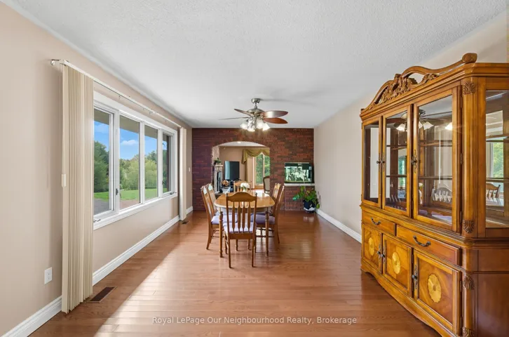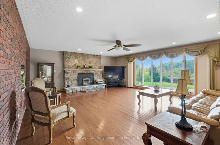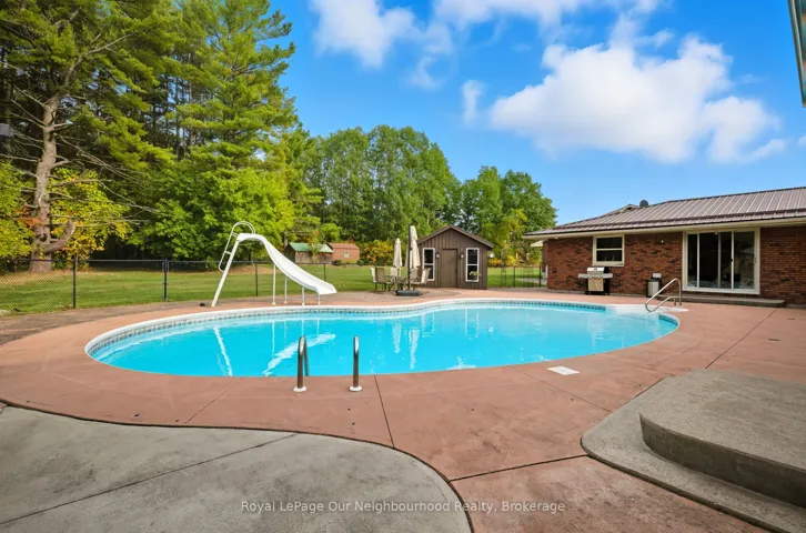 +"PublicRemarks": "Escape to your own private rural retreat on over 11 acres. This spacious 6-bedroom, 4-bathroom bungalow features a large kitchen with solid wood cabinetry, a bright living room with a cozy wood-burning fireplace, and a welcoming dining space - perfect for gathering with family and friends.The partially finished basement adds even more versatility, offering a rec room, gym area, and a 5-piece bathroom with an accessible shower.Step outside and discover your own outdoor oasis, complete with a saltwater pool, hot tub, gazebo, screened porch, and beautifully finished stamped concrete walkways surrounding the home. Enjoy quiet evenings wandering the trails that wind through the peaceful, wooded landscape.Car enthusiasts and hobbyists will appreciate the impressive approx. 2,000 sq. ft. heated garage, featuring nearly 11' ceilings, hot and cold water, and floor drains.Ideally located between Warkworth, Campbellford, and Hastings, this property offers the perfect blend of space, comfort, and lifestyle."