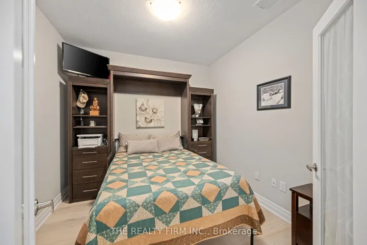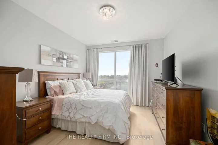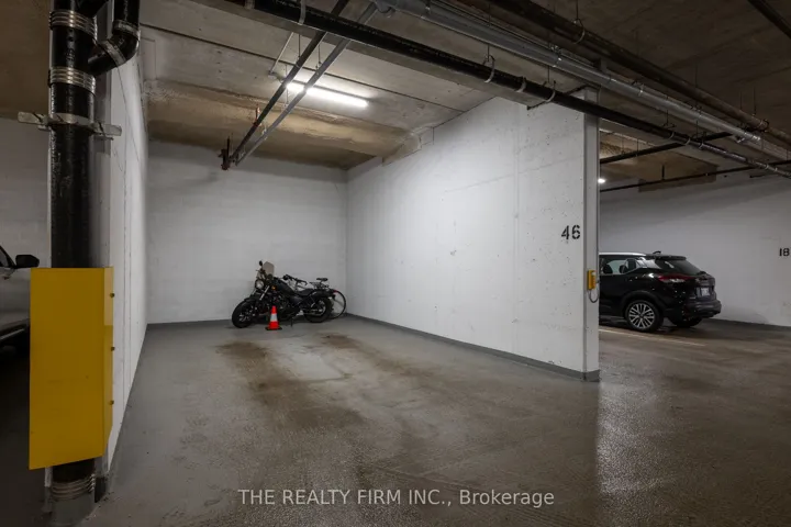 +"PublicRemarks": "Penthouse-level one bedroom + den suite with soaring 9-foot ceilings, premium finishes, a modern neutral colour palette, and unobstructed south-facing neighbourhood views, after dark enjoy sparkling views of the downtown lights. Ideally located in desirable North London just moments from top amenities and shopping. The kitchen showcases quartz countertops, custom white shaker cabinetry, a stylish tile backsplash, a spacious island, and stainless steel appliances, perfect for both everyday living and entertaining. Light-toned engineered hardwood flooring runs seamlessly throughout, adding warmth, an elevated feel, and timeless design. The living area offers a stunning fireplace with tile surround, remote-controlled blinds, and walkout to a private balcony complete with a retractable awning, an ideal spot to relax and unwind or enjoy morning coffee. The generously sized bedroom features a walk-in closet with custom built-ins. Beautifully finished bathroom with frameless glass shower and quartz vanity. Versatile den with built-in Murphy bed and desk combination, ideal for a home office or guest space. Additional highlights include a spacious in-suite laundry room, storage locker, and premium indoor parking in a private bay, pre-wired for a future EV charger. Condo fees include heat, A/C, and water. Exceptional building amenities offer a true resort-style living experience, featuring an indoor saltwater pool, golf simulator, fitness centre, billiards lounge, theatre room with wet bar, dining room, guest suite, and visitor parking. A rare opportunity to own a standout penthouse-level one bedroom + den offering a level of quality and finishes not typically found in comparable units."