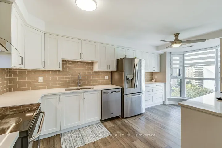 +"PublicRemarks": "Luxury living meets modern style in this beautifully updated 2-bedroom, 2-bath suite at Bentley Place in the heart of the Durand neighbourhood. This expansive 1500+ sqft corner unit offers a bright, open-concept layout filled with natural light and city views through newly installed windows (2025). The modern white kitchen is a standout feature, showcasing gorgeous Statuario quartz countertops, stainless steel appliances and plenty of cabinetry for the aspiring chef. The spacious dining and living areas have amazing appeal whether it be for entertaining or relaxing. Two large enclosed balconies extend the living space - one off the living room (open and closed) and one private to the primary bedroom - offering an option to enjoy the skyline views year-round, rain or shine. The primary suite includes a spa-inspired 5-piece ensuite with a jetted tub and a generous walk-in closet with closet organizers. The second bedroom is equally spacious, also featuring a walk-in closet and custom storage solutions. Thoughtfully updated throughout with modern flooring, fresh paint and fashionable zebra blinds, every detail reflects care and contemporary taste. Residents of Bentley Place enjoy exclusive amenities including an exercise room, media room and underground parking. Highly walkable location! This wonderful spot will appeal to you if you enjoy walking, cycling or utilize public transit. Convenient proximity to Mc Master Hospital/University. Surrounded by the arts, culture, recreation of downtown Hamilton. You will be within walking distance to James Street North, Hess Village, the Farmer's Market, First Ontario Concert Hall, the Art Gallery of Hamilton, Locke Street, parks, a wide variety of cuisine, fine dining, shopping, West Harbour GO and scenic escarpment trails. One of the building's larger units, this move-in-ready suite delivers the sophistication, space, and lifestyle you've been waiting for."