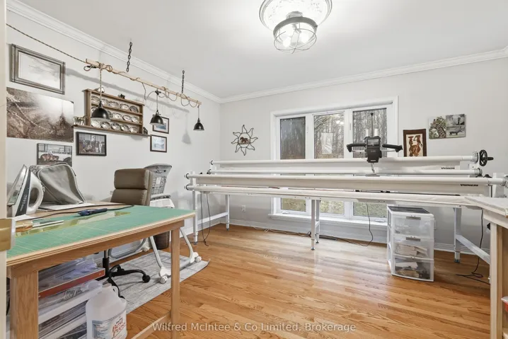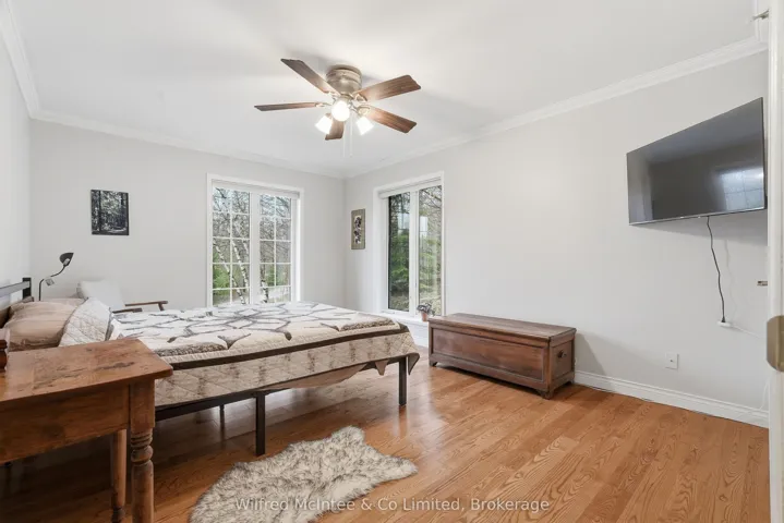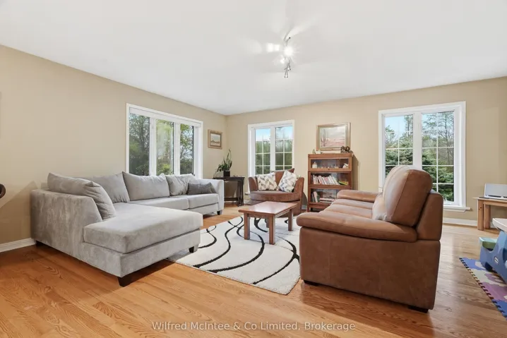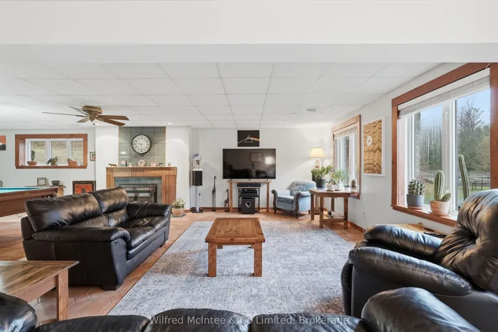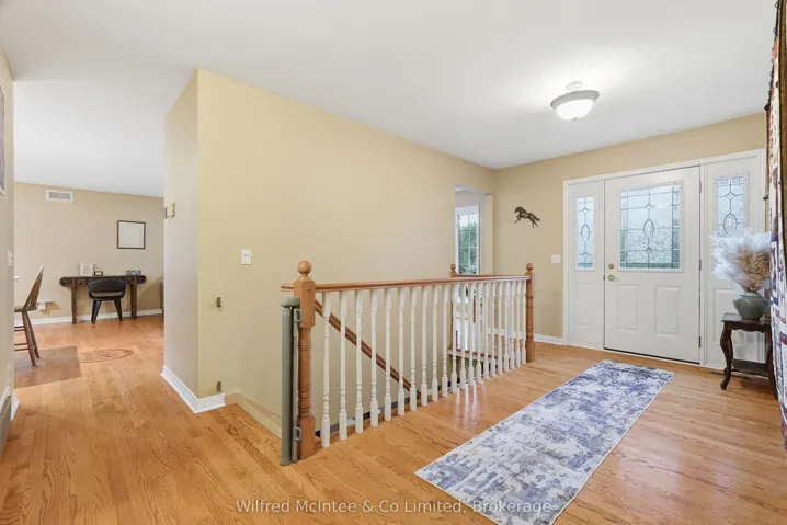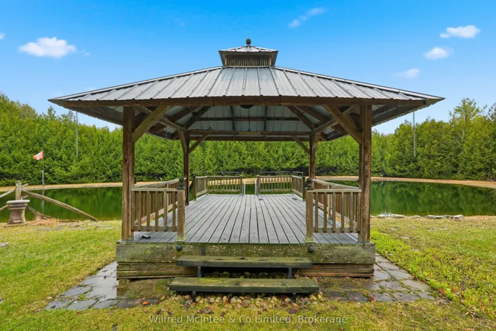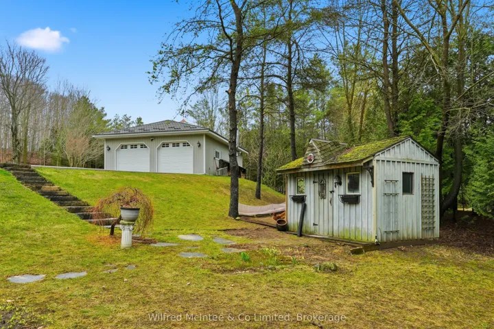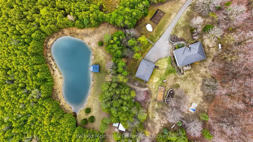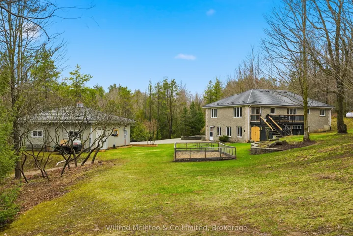 +"PublicRemarks": "6.77 acres of trails, a beautiful pond and a detached shop. Surrounded by nature, this stunning 2,800 sq. ft bungalow with a walkout basement offers expansive views across a beautifully maintained private property. The open-concept layout features welcoming entry foyers, a spacious mudroom, and above-grade basement windows that fill the lower level with natural light. Multiple walkouts lead to a deck and patio, seamlessly blending indoor and outdoor living. The flexible floor plan accommodates up to five bedrooms, easily configured to suit your needs- whether as a 3-bedroom home with office, studio, or formal dining space, or a full 5-bedroom layout. In-law capability adds further versatility for extended family or multi-generational living. Enjoy year-round comfort with a propane furnace, fireplace, central A/C, and a durable lifetime steel roof. The detached garage/shop is a standout feature-fully finished and serviced with water, hydro, heat, and insulation. It includes two front and one side 9-ft overhead doors, plus a convenient man door, making it ideal for hobbyists, contractors, or additional storage. The meticulously groomed grounds extend to a private pond complete with a covered deck cabana and elevated dock area. Additional features include raised garden beds, charming garden sheds, a children's play area, and scenic walking trails through the surrounding bush. Located just minutes south of Hanover, this exceptional property offers the perfect balance of privacy, functionality, and peaceful rural living."