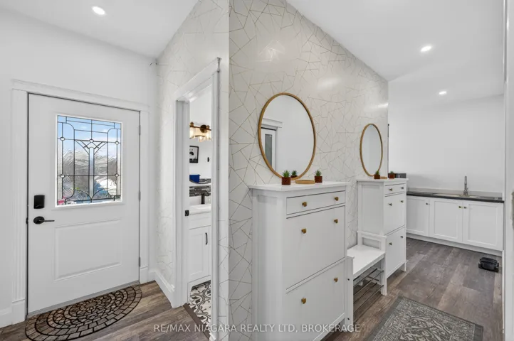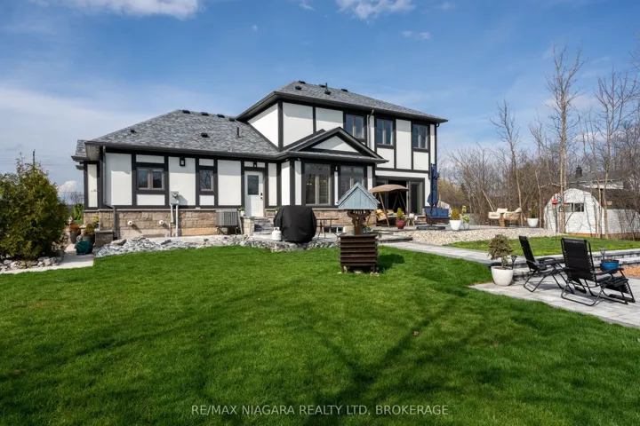 +"PublicRemarks": "Welcome to this stunning 2022 custom-built home in the charming community of Ridgeway; just a short 7-minute drive to the sandy shores of Crystal Beach. Thoughtfully designed with exceptional craftsmanship and timeless finishes, this home offers the perfect blend of luxury and comfort. Step inside to a breathtaking foyer featuring 18-foot ceilings and a crystal chandelier, setting the tone for the elegance found throughout. The main level showcases 9-foot ceilings, detailed wainscotting and crown moulding, and a bright, open-concept great room with walkout to the backyard-perfect for entertaining and everyday living. The heart of the home is a chef-inspired kitchen complete with a 9-foot island, stunning Calacatta quartz countertops, high-end cabinetry, stainless steel appliances, a 5-burner gas stove, and beautiful live-edge wood shelving. Natural wood barn doors and oak tread stairs add warmth and character throughout the space. This home features 4 spacious bedrooms and 4 lovely bathrooms, including ensuites and walk-in closets in both the main level and primary bedrooms. The luxurious primary ensuite offers a spa-like experience with a 4-piece layout. Step outside to your private backyard retreat, featuring a large interlock patio, cozy firepit, and a serene koi pond with waterfall-an ideal setting to relax or entertain. A 130 sq ft shed, 2-car garage, and 6-car driveway provide ample storage and parking. Additional features include a hardwired security system, well water with iron filter & water softener, owned tankless water heater and 200 amp electrical service. This is a rare opportunity to own a beautifully crafted home in a prime location close to beaches, amenities, and small-town charm. Enjoy the peace and privacy of a quiet rural setting while still being just minutes from Crystal Beach and all that Fort Erie has to offer."