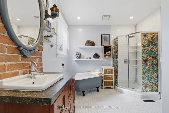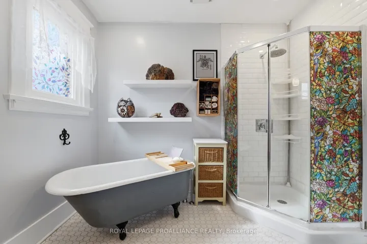 +"PublicRemarks": "This stunning two storey, 4 bedroom home has been meticulously preserved to keep its original 1920's vintage vibe alive, while benefiting from over $125,000 in high-end, modern updates that ensure total peace of mind. Situated on a spacious, fully landscaped corner lot, this home makes a statement before you even step through the front door. New siding and exterior paint brings a fresh aesthetic. The roof was re-done in 2017 and many new custom ordered windows (2023) flood the home with light while keeping the elements at bay. Inside, you'll find the soulful architectural details of 1920 enhanced by modern comforts. 3 large bedrooms upstairs and a tiled bathroom offer loads of space for the family. An insulated attic with a plank floor gives "secret library" potential for the adventurous homeowner. The true showstopper is found in the heart of the home. The kitchen features custom installed beer taps, with lines running directly to the basement. Dinner parties will ALWAYS be hosted at your place, when your friends and neighbours can count on their favorite local brew always on draught. A few steps from the kitchen is the powder room, main level laundry and there's even a 4th bedroom or handy home office right here on the main floor. The back door leads straight out to an intimate patio and deck. Perfect for delivering flights of craft beer to your guests! The basement is a hobbyist's sanctuary, and arguably the tidiest, driest, and most organized stone basement in Belleville. This is where the kegs live, feeding the taps upstairs, with plenty of extra room for seasonal storage or a workshop. This is more than just a house; it's a lifestyle for the collector, the creator, and the connoisseur."