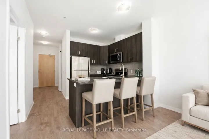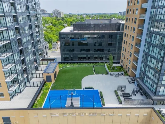 +"PublicRemarks": "Perched high above the vibrant Kitchener skyline, this ONE-BED + DEN condo at 104 Garment St, Unit 1206 offers an exceptional opportunity in Downtown Kitchener's most sought-after addresses. BRIGHT OPEN-CONCEPT LAYOUT enhanced by PREMIUM FLOORING AND FRESHLY PAINTED neutral tones. The contemporary kitchen offers GENEROUS GRANITE COUNTERTOPS, STAINLESS STEEL APPLIANCES, A TASTEFUL TILE BACKSPLASH, & a breakfast bar that overlooks the main living area. The spacious living room is flooded with natural light from IMPRESSIVE FLOOR-TO-CEILING WINDOWS and offers direct access to a private balcony overlooking the terrace below. The PRIMARY BEDROOM IS BOTH COMFORTABLE AND FUNCTIONAL, featuring a large walk-in closet and a GENEROUS WINDOW FRAMING ELEVATED CITY VIEWS. A versatile den provides the perfect space for a home office, reading nook, or guest area, also offering a full 4-piece bathroom, convenient in-suite laundry, and additional storage. Residents of this highly desirable building enjoy an impressive array of PREMIUM AMENITIES INCLUDING A ROOFTOP TERRACE with stunning city views, a fully equipped fitness centre, private theatre room, party room, and a stylish media lounge-perfectly suited for today's dynamic professional lifestyle. The unit also comes complete with one underground parking space for added convenience. Ideally situated in the heart of Downtown Kitchener's Innovation District, this prime location places you just steps from the ION LRT, Grand River Hospital, Victoria Park, and an incredible selection of restaurants, cafés, and boutique shops. With major employers such as Google and the thriving tech hub nearby, THIS LOCATION IS PERFECTLY POSITIONED FOR PROFESSIONALS SEEKING BOTH CONNECTIVITY AND LIFESTYLE. Offering the perfect blend of modern design, functional living space, and unbeatable downtown convenience, this impressive condominium is a remarkable opportunity to enjoy the very best of city living."