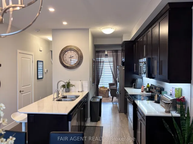 +"PublicRemarks": "This spacious and modern 3-storey condo townhouse offers a functional layout suited to families, downsizers, first-time buyers, or investors, with the added flexibility of renting individual rooms since each bedroom features its own full ensuite. Built in 2018 and located in one of North West London's growing neighbourhoods, the home showcases 12-foot ceilings, hardwood flooring, quartz countertops, and a bright open-concept design. The main floor includes a versatile room with a built-in Italian Murphy bed/sofa, a 3-piece ensuite, and walkout to an east-facing private deck, making it ideal as a guest suite, office, or additional living space, along with inside entry from the attached garage. The second level is designed for everyday living and entertaining, with a sun-filled east-facing dining area, modern kitchen, and a spacious west-facing living room with patio access where you can enjoy unobstructed sunset views. A 2-piece bath and extra storage complete this level. Upstairs, you'll find convenient second-floor laundry and two generously sized bedrooms, each with its own ensuite bath, walk-in closet, and ceiling fan. With an attached garage, private driveway, water filtration system, and condo fees that include snow removal and lawn care, this home offers both comfort and ease of ownership. Located within walking distance to Walmart, Canadian Tire, Marshalls, Home Sense, Structube, RONA, restaurants, and schools, with direct bus access to Western University and Masonville Mall, it's a well-rounded opportunity in a highly convenient location."