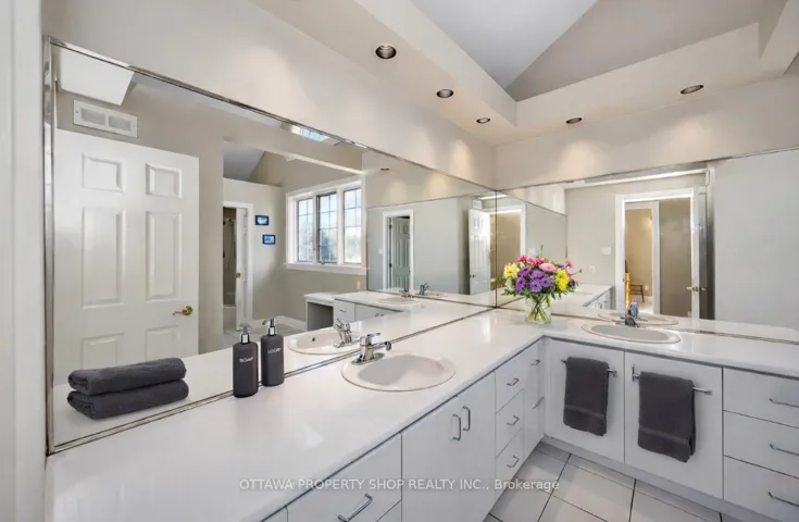 +"PublicRemarks": "Offering breathtaking views, spectacular sunsets, mature trees, a winding approach, and extensive landscaping, this attractive residence captures the best of both worlds: the seclusion of the country, yet just minutes to the conveniences of Kanata and Ottawa all with the luxury of fiber-optic internet in the countryside. Set on 25.55 acres, this extraordinary estate blends privacy, elegance, and modern comfort. The impressive approximately 4,700 sq. ft. home showcases timeless architectural details, abundant natural light, and a thoughtful layout. At the heart of the home is a gourmet kitchen, thoughtfully designed with maple cabinetry accented by crown molding, sleek Corian countertops, glass-front cabinets, and a center island with breakfast bar. Smart features such as a microwave sling, lazy Susan, desk nook, bread pantry box, and extensive storage solutions enhance both function and style. The main level also features elegant double French doors, expansive principal rooms, and a cathedral-ceiling primary suite with extensive closets and a spa-inspired ensuite with double vanity, oversized shower, and tiled floors. Upstairs, two staircases lead to three generously sized bedrooms, each enhanced by vaulted ceilings, Palladian windows, and balcony access with sweeping views of the property. The walk-out lower level extends living space with a recreation room, games area, hobby room, office/den a full bath with oversized shower, and ample storage. Patio doors open to a 20 x 30 interlock stone terrace, seamlessly connecting indoor and outdoor living."