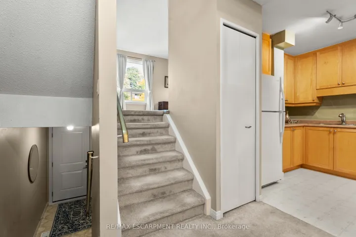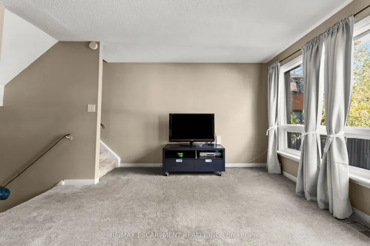 +"PublicRemarks": "Most townhomes make you choose between space, privacy, or location - this one quietly delivers all three. Welcome to this beautifully maintained end-unit townhome in one of Hamilton's most desirable West Mountain communities, tucked into a family-friendly condo complex with its own on-site park and a surprisingly comprehensive condo fee that covers Cable TV, High Speed Internet, Water, Building Insurance and Maintenance, Common Elements. Inside, the unique split-level design creates a natural separation between living spaces while still feeling open and connected - a layout that just works for real life. The welcoming foyer leads up to an eat-in kitchen and dining area with updated cabinetry and direct access to the fenced, low-maintenance yard - ideal for morning coffee or effortless weekend BBQs. Just above, the bright living room is filled with natural light from large windows. Upstairs, the primary bedroom feels like its own retreat, complete with an updated 4-piece bathroom. Two additional bedrooms sit on their own level, offering flexibility for family, guests, or a home office without sacrificing privacy. Outside, a double-deep driveway and garage provide parking for three vehicles - a rare and practical bonus. The unfinished basement offers laundry and plenty of storage, with room to grow. Recent updates include attic and basement insulation(2023), new windows and doors (2025), a furnace replaced 4 years ago, and a whole-home humidifier installed this past November. Set close to parks, shopping, schools, and highway access, this is a home that blends comfort, convenience, and long-term value in a neighbourhood buyers consistently look for."