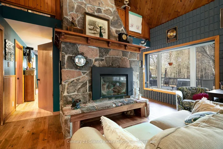 +"PublicRemarks": "Spacious Retreat on almost 1.3 Acres - A unique blend of comfort, character and income potential! Welcome to your dream retreat! Nestled on a picturesque lot with easy access off a paved, township maintained road, this stunning, environmentally conscious home offers over 3,200 sq ft of beautifully finished living space across 3 levels. With 3+1 bedrooms, 2 full, modern bathrooms and a thoughtful design throughout, this energy-efficient home is flooded with natural light and built for year-round comfort. Step inside to a show stopping, open concept main floor, featuring a soaring vaulted ceiling, gorgeous floor to ceiling natural granite fireplace with a propane inserted; and expansive windows framing the views of the surrounding forest. A sliding glass door walkout leads to a large deck and stone patio- perfect for entertaining or soaking in the peace and privacy of your landscaped backyard. Upstairs, the private primary suite is a true sanctuary with a walk-in closet, luxurious soaker tub, private bath and a cozy sitting area that overlooks the great room below. The fully finished walk out basement is warm and inviting with a WETT certified wood stove set on a granite hearth, a spacious workshop/storage area, and 2 bonus rooms, ideal for a home office, gym, craft room , or an extra bedroom. Outside , you'll find ample level parking, a double attached carport, and a versatile barn with electricity and water- perfect for hobbyists, storage or small scale farming. The location is ideal with hiking and snowmobile trails in the area and a public boat launch to Kushog/Boshkung Lakes right at the end of the road. And here's the bonus: this home comes with Hydro One Solar Contract ( Until 2030) that would generate a strong supplementary annual income of 80.2 cents/Kwh, and eco-friendly feature that when working at full capacity pays you back! This property checks all the boxes and the peace and tranquility that surrounds you will set your heart at rest!"
