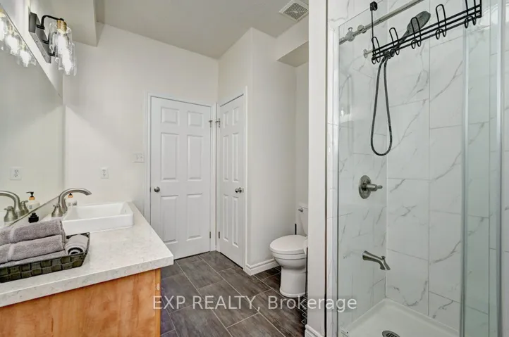 +"PublicRemarks": "This beautiful open bright family home offers spacious layout throughout. The Master bedroom is on the main floor with a full ensuite, ideal for older home owners with a separation from other bedrooms. Situated in a quiet cul-de-sac with privacy surrounded by mature trees and landscaping. This unit has lots of natural lighting and the complex has impressive curb appeal as a whole. The main floor starts with a cozy office or reading nook with a very large powderoom. The laundry/pantry is spacious behind the kitchen. The kitchen has stainless steel appliances, a quartz counter top is a deep and large single sink. The floorings are a couple of years old on all three floors and the unit has been painted within the last year. The dining area flows from the kitchen with high ceilings with a 2nd floor overlook. The second floor common area can be converted to a 4th bedroom with a existing closet. Large sliding glass doors lead to the deck, cozy for reading or entertaining during summer evenings. The basement is fully finished with a full bathroom and large open areas which can be separated into bedrooms. Few minutes walking distance to highly rated Abraham Erb public school and Laurel Heights Secondary school, Food basics and Shoppers drug mart. Within 7 min drive to University of Waterloo, Costco, YMCA, and The Boardwalk. Many all season walking trails around the neighbourhood.. The complex is a close community with small number of units. Very safe and welcoming... Equally good for anyone downsizing and starting a new family."