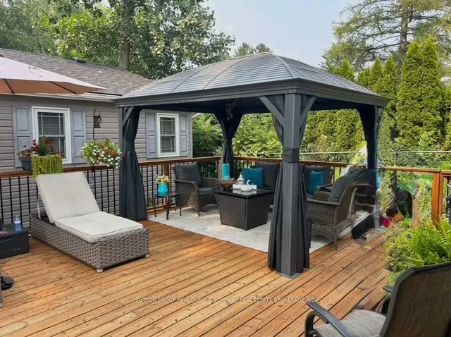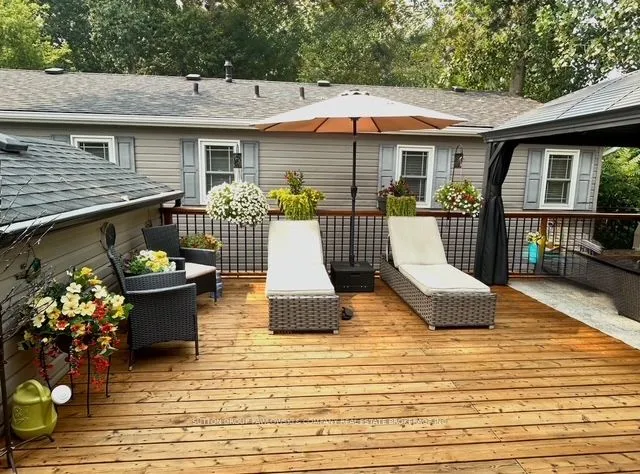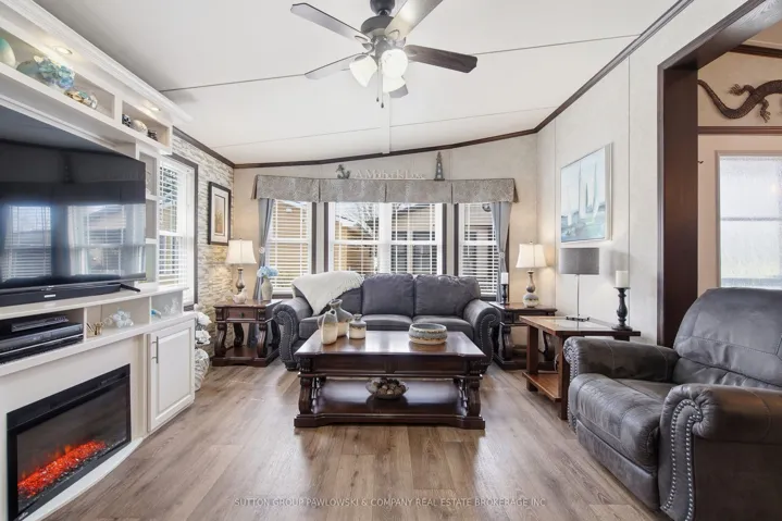 +"PublicRemarks": "Welcome to Oriole Park #142 in Komoka's sought-after 55+ community... where lifestyle meets low-maintenance living. This beautifully maintained, original-owner modular home (2017) stands out with upgraded black trim, a premium location within the park, and exceptional indoor-outdoor living.Offering approximately 1,250 sq ft, this home features a bright, open-concept layout with a spacious kitchen complete with abundant cabinetry, large island, and included appliances... flowing seamlessly into the dining area. The inviting living room showcases a custom built-in wall unit with electric fireplace and oversized windows that flood the space with natural light.A versatile den/family room with patio doors leads to a stunning 24' x 18' private deck... perfect for entertaining, complete with gazebo, curtains, screens, and winter cover. Two generous bedrooms and two full bathrooms include a primary suite with ensuite and ample closet space.Additional highlights include forced air propane furnace and central air, convenient in-home laundry, upgraded blinds, in living room & dining room, front porch with glass railing, and excellent storage including an 8' x 12' shed and storage beneath the deck.The exterior is equally impressive with a double driveway and newly built 2-car carport (2025), propane BBQ with quick connect, and beautifully maintained gardens.Residents enjoy access to resort-style amenities including a community centre with licensed bistro/bar, pool table, shuffleboard, darts, golf simulator, pickleball, fitness centre, event space, library, salon & spa, dog grooming station. Beautifully landscaped grounds with swimming pool, community fire pit and garden, bbq area, off leash dog park, shuffleboard, and fish ponds A rare opportunity to enjoy living in one of Komoka's most desirable adult lifestyle communities."