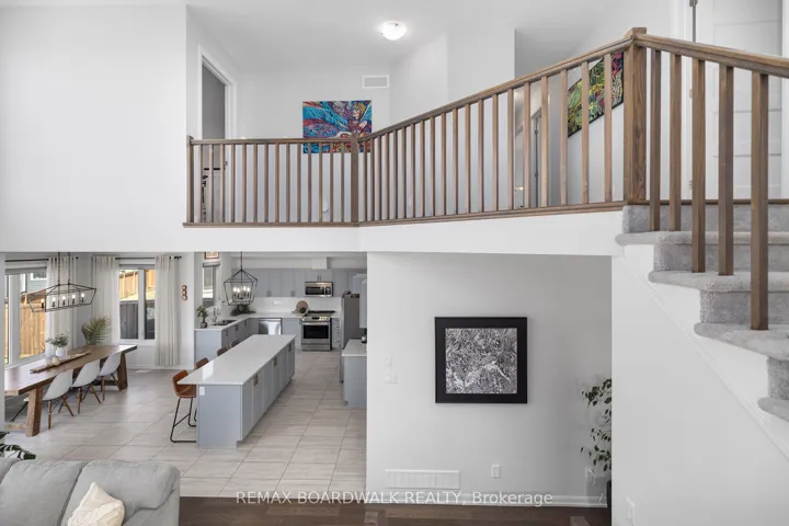 +"PublicRemarks": "OPEN HOUSE, SUNDAY APRIL 26 2:00 - 4:00 PM. Step into a beautifully designed home offering comfort, functionality, and a layout ideal for both everyday living and entertaining. Situated on a premium lot with added side space, offering enhanced privacy and a more open feel compared to typical homes in the area. From the moment you enter, you are greeted by a spacious foyer with a closet, a versatile den perfect for a home office, and a well-designed layout featuring separate living and dining areas ideal for both family living and entertaining. The main floor showcases elegant hardwood flooring and a stunning oversized kitchen complete with a large island, granite countertops, and an exceptional amount of cabinetry, providing abundant storage and workspace while seamlessly connecting to the living spaces and creating a natural flow throughout the home. A few steps up, the home reveals its standout feature: a stunning loft-style family room with soaring double-height ceilings and expansive windows that fill the space with natural light, creating a bright and inviting atmosphere. Overlooking the main living areas and visible from the upper hallway, this space enhances the sense of openness and connection, ideal for both relaxing and entertaining. The second level offers a spacious primary bedroom with hardwood flooring, a well-appointed ensuite with separate tub and shower, and a walk-in closet. Two additional bedrooms and a full bathroom provide comfort and flexibility for a growing family. The fully finished basement adds value with a full bathroom, a den ideal for a home office or study, and a partially finished room ready to be customized as a bedroom, secondary laundry, or flexible living space. This home was thoughtfully customized by the original owners with upgrades that reflect pride of ownership and attention to detail throughout. Ideally located in Barrhaven close to parks, schools, shopping, and everyday amenities."