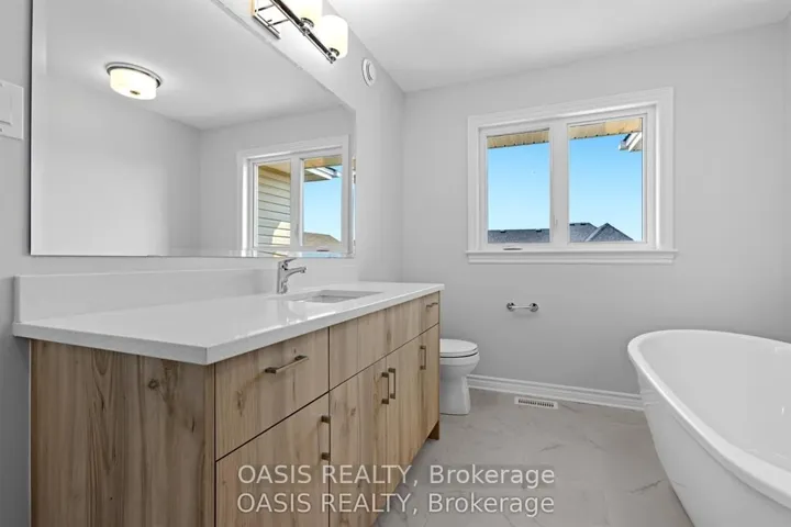 +"PublicRemarks": "Welcome to this stunning, upgraded freehold townhome in Pickering's sought after Seaton community. Thoughtfully designed with an east-west orientation, the home is bathed in natural light. Carpet-free interior comes with upgraded flooring and a timeless oak staircase. A spacious foyer leads into an open-concept main level with 9' Feet ceilings, with a beautifully appointed kitchen showcases Hardwood cabinetry, Quartz countertop, Upgraded appliances, Large Centre Island, and sleek finishes. Perfectly paired with Living and Dining spaces for effortless entertainment. Zebra blinds throughout the house with an added refined modern touch. Upstairs, retreat to a luxurious Master Bedroom with a walk-in closet and a tastefully upgraded 5pc ensuite with a glass shower enclosure, quartz counter with double sink and upgraded tiles. Two more spacious bedrooms with spacious closets and a good size common bathroom for your use. Enjoy the convenience of interior garage access and the curb appeal of an upgraded elevation. Thousands of dollars spent on various upgrades including smooth ceiling throughout main floor, zebra blinds, water softner system, back splash in the kitchen, upgraded floor and wall tiles in the bathrooms, light fixtures, Moen faucets, GDO with camera and remote, security cameras, washer dryer, stainless steel kitchen appliances, owned tankless water heater (no monthly rent), furnace, central Air conditioner (heat pump), ERV, smart thermostat, 200-amp electrical service, Front door smart lock, Rough-in for EV charger, and 3pc rough-in the basement. Ideally located near parks, schools, shopping, transit, and major highways; this exceptional home offers the perfect blend of style, comfort, and convenience. Awesome place to call as your Sweet Home. GRAB it while you can!!! to 4pm. Come on in. Open House: SAT & SUN: 3pm to 5pm"