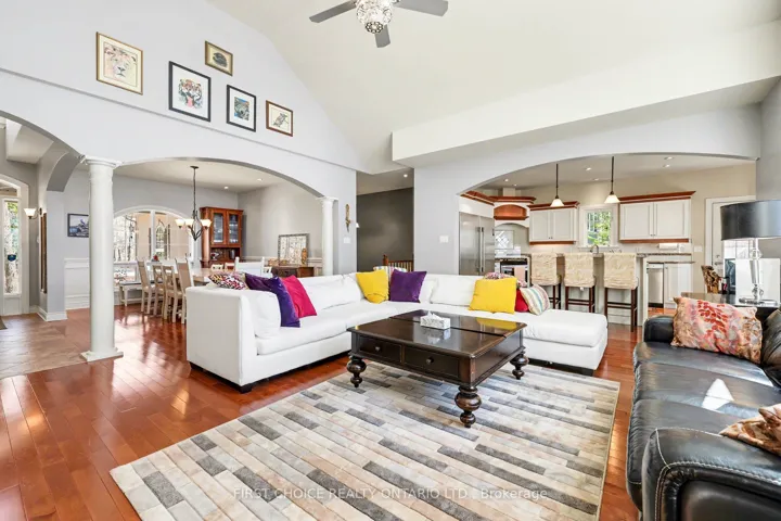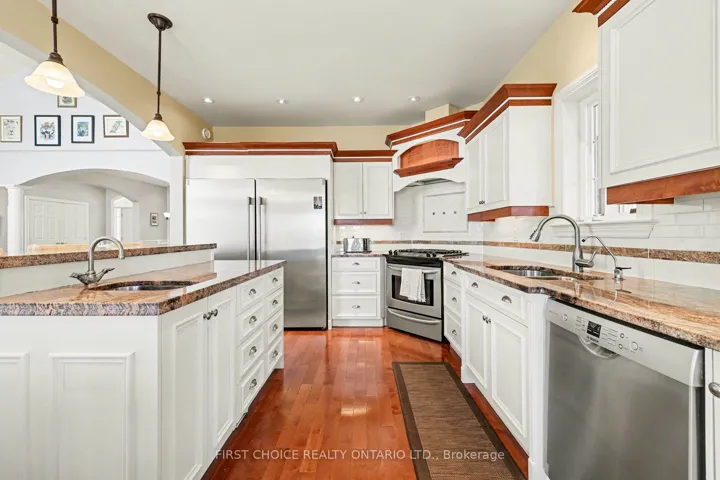 +"PublicRemarks": "Luxurious waterfront living on the Ottawa River! Stunning 3 bdrm bungalow w/ walkout LL offering panoramic river views & spectacular sunsets. Bright open-concept living/dining area features cathedral ceiling, dramatic wall of windows & elegant fireplace. Gourmet kitchen w/ granite counters, designer ceramic backsplash, sit-up island & breakfast area. Access to screened porch & 12' x 24' deck-perfect for outdoor enjoyment, plus a 36'x20' deck. Primary Suite overlooks the water w/ sitting area, 2 walk-in closets & 5-pc ensuite. Fully finished walkout Lower level boasts spacious family rm w/ TV area & wet bar, exercise space, hobby rm, custom maple office/den, 2 additional bedrooms & 2 full 4-pc Ensuite !! Walk-out to your backyard paradise with your private Hot tub, a quick access to your private beach, kayak, Bunkie, fire pit and much more!! Hardwood floors on both levels, with ceramic in key areas. Triple car garage w/ workshop, equipped for Power Tool hookups. Exceptional waterfront lifestyle in a premium setting. Come for a visit, and stay a lifetime!! Generac installed in 2023, furnace 2022, Hot Tub 2023, garage doors 2023, refurbished kitchen cabinets 2026, partial roof 2026, garage pony panel 2022, Peat Moss replaced in septic system 2024, insulated/ heated garage 2019. IN A NO FLOOD ZONE."