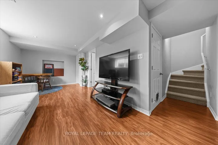 +"PublicRemarks": "Spacious and beautifully maintained "San Mateo" model that feels more like a detached home! This rare end-unit offers a highly sought-after double car garage and sits on an oversized corner lot in a quiet, family-friendly neighbourhood. The main level features elegant hardwood flooring and a bright, open-concept living and dining area-perfect for entertaining. A cozy family room with a gas fireplace adds warmth and comfort, while the generous eat-in kitchen is equipped with stainless steel appliances, quartz countertops (2023), and a stylish backsplash (2026), with patio doors leading to a large deck-ideal for outdoor living. Upstairs, you'll find three spacious bedrooms, including a primary retreat complete with a walk-in closet and private ensuite. The fully finished lower level offers a versatile rec room and a full 4-piece bathroom, providing excellent additional living space. Recent upgrades include plush carpeting (2023), roof (2023), storage shed (2023), and a fully fenced yard (2024). With 4 bathrooms in total, this home offers both space and functionality for growing families. Conveniently located close to schools, shopping, transit, parks, and recreation-this is one you won't want to miss!"