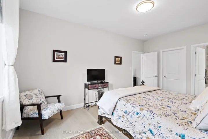 +"PublicRemarks": "Step into modern comfort with this impeccable executive-style semi-detached home, a 2024 build by reputable Brownsdale Custom Homes, perfectly positioned in a sought-after subdivision surrounded by lifestyle amenities. Designed with a bright, open-concept layout, the main level showcases engineered hardwood and tile flooring throughout. The gourmet kitchen is the heart of the home, featuring quartz countertops, a stylish backsplash, quality stainless steel appliances, and a functional breakfast bar-ideal for both everyday living and entertaining. The spacious living room flows seamlessly into the dining area, which offers rear access to a covered deck and private backyard, creating an inviting indoor-outdoor experience. The main floor includes two well-appointed bedrooms, including a primary suite complete with a 3-piece ensuite featuring a tiled shower. A 4-piece guest bathroom with tub/shower combination and convenient main floor laundry add to the home's thoughtful design. The fully finished basement expands your living space with a generous family room, third bedroom, additional 3-piece bathroom, and ample storage and utility areas-perfect for guests, a home office, or growing families. Additional features include an attached double car garage, paved driveway, stone patio, natural gas furnace, and central A/C. Enjoy living in a vibrant community surrounded by the scenic Parks of the St. Lawrence, offering access to recreation, waterfront bike paths, golf courses, marinas, schools, and churches. Conveniently located just 10 minutes from Cornwall with an easy commute to Montreal or Ottawa. A polished blend of style, function, and location-this home is ready to impress. As per Seller direction allow 24 hour irrevocable on offers."