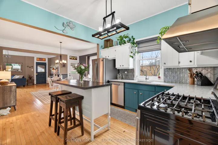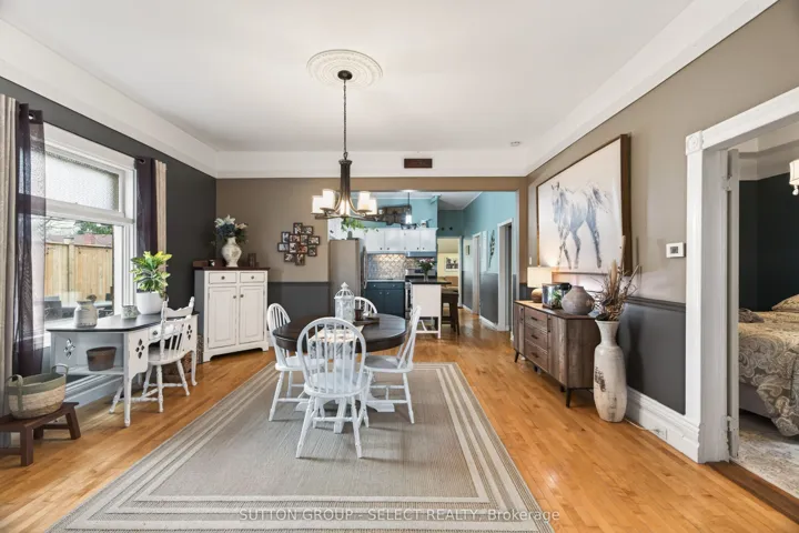 +"PublicRemarks": "Lovey Victorian brick home filled with timeless charm and character carefully maintained to uphold the original fine details and craftsmanship and thoughtfully updated to seamlessly incorporate tasteful modern updates. Attention to detail is outstanding, beginning with the covered front porch with ornate gingerbread trim. Upon entering through the original door complete with vintage door bell, you'll be greeted by the vaulted ceiling, stained glass transom windows, original baseboard and beautiful hardwood in the living rm. The dining room with separate exit to the covered porch, stained glass transoms, and a lovely plaster cornice is handily open to the kitchen which has been lovingly updated with painted cabinetry and charming decorative hardware, quartz counters, back splash, an island with hydro and a pantry/linen closet offers additional storage. The main floor includes two bedrooms, both with hardwood flooring and intricate tray ceilings, one with a unique circular design, along with a beautifully renovated 3pc bathroom. At the rear of the home, the mudroom/sun room area offers main floor laundry and basement access. Upstairs, the versatile loft includes wood floors, closet space, a 2pc powder rm, and an open overlook to the living rm below, perfect as a primary retreat, office, playroom, or flex space. The private backyard is an entertainer's delight, fully fenced with a fence 2024, mature trees, multiple seating areas, stamped concrete 2024, and low maintenance gardens with no grass to mow and a charming little house with hydro, perfect as a playhouse, storage or studio, plus a garden shed. Rear gate access leads to private 2 car parking. Additional updates include a metal roof, furnace and A/C 2020. Perfectly situated across from Kiwanis Park, with splash pad, playground, ball diamonds, and scenic walking trails, and just moments from all essential amenities, this exceptional home is a rare gem that effortlessly balances historic charm with modern living."