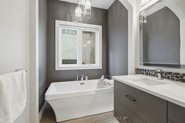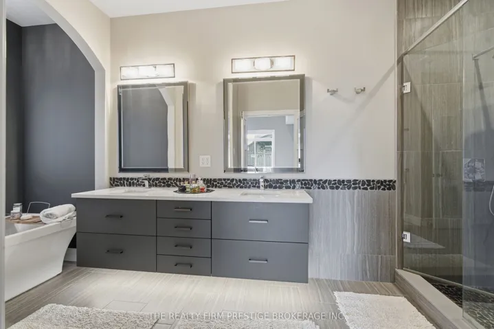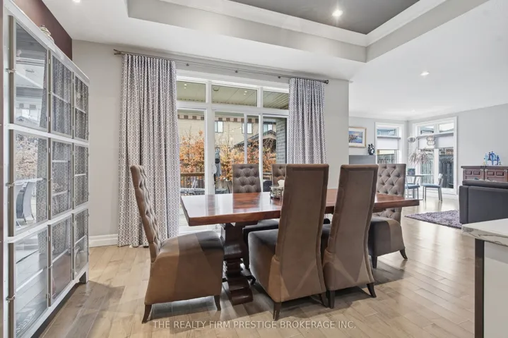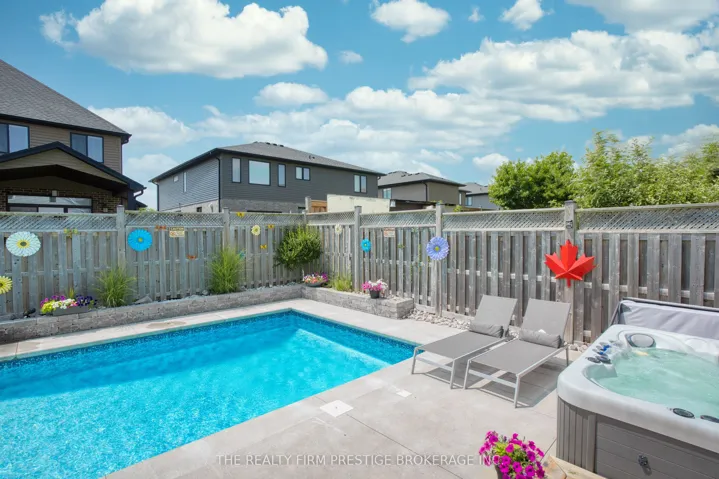 +"PublicRemarks": "Welcome to this stunning custom-built home by Mapleton Homes, located in the highly sought-after Sunningdale West community. Thoughtfully designed with luxury and functionality in mind, this home offers a rare MAIN floor PRIMARY Bedroom, complete with a spacious walk-in closet and a spa-inspired five-piece ensuite. At the heart of the home is a luxury EUROPEAN Style Kitchen featuring an induction stove with a sleek retractable hood complemented by elegant above and below cabinetry lighting. The spacious island is perfect for entertaining and flows effortlessly into the open-concept dining area and inviting living room, highlighted by a cozy gas fireplace. Upstairs, you'll find THREE generously sized bedrooms, each featuring its OWN private ensuite - perfect for family living or hosting guests in comfort and style. The fully finished lower level with HEATED floors, extends your living space with a bedroom and ensuite, a dedicated gym, and a games room, along with convenient WALKUP ACCESS to outside. Two powder rooms located on the main floor and lower level. Step outside to your private backyard oasis, showcasing a gorgeous saltwater pool with feature jets, surrounded by broom-finished concrete for a clean, modern look. Enjoy multiple outdoor living spaces with two decks, including a secluded deck off the primary suite-ideal for relaxing mornings or quiet evenings. Complete with a triple car garage and located in one of North London's most desirable neighbourhoods with newly built Schools - Saint Andre Bassett Catholic SS, Mother Teresa SS, and St Gabriel Catholic, as well Walking distance to Sir Arthur Currie PS and Banting SS. This exceptional home combines elegance and lifestyle with space for MULTIGENRATIONAL living, or INCOME potential, this home as it all."