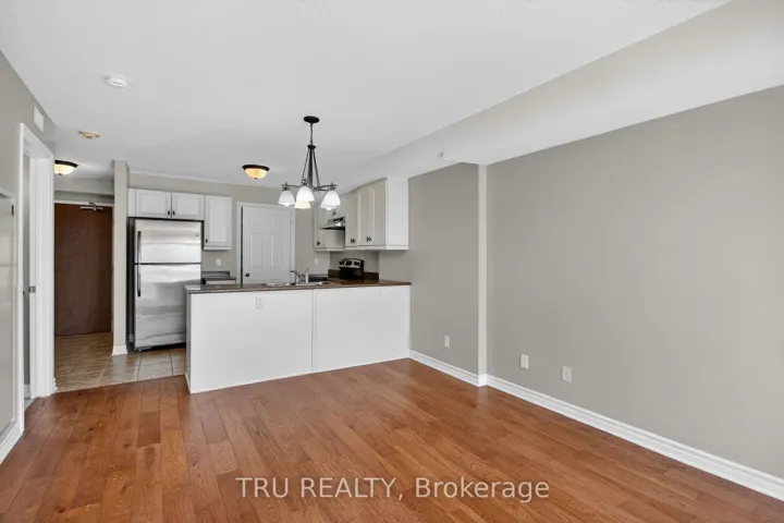 +"PublicRemarks": "Welcome home to modern creek-side living! This stunning, open-concept one-bedroom plus den condo backs directly onto the serene Barnes Creek, offering a perfect blend of nature and style. The interior has been freshly painted and features brand-new hardwood floors throughout the great room and bedroom, complemented by sleek ceramic tile and stainless steel appliances in the kitchen. The spacious primary suite offers convenient "cheater" access to the main bathroom, while the versatile den and private balcony provide ample space for work or relaxation. Complete with the rare luxury of two outdoor parking spots and in-suite laundry, this unit offers ultimate convenience. The building itself is well-equipped with an elevator, exercise room, party room, and storage lockers, while the condo fee conveniently includes both heat and water."