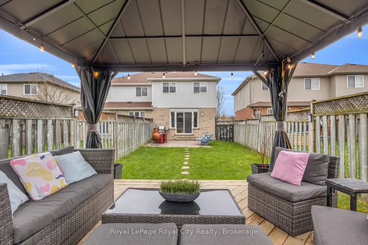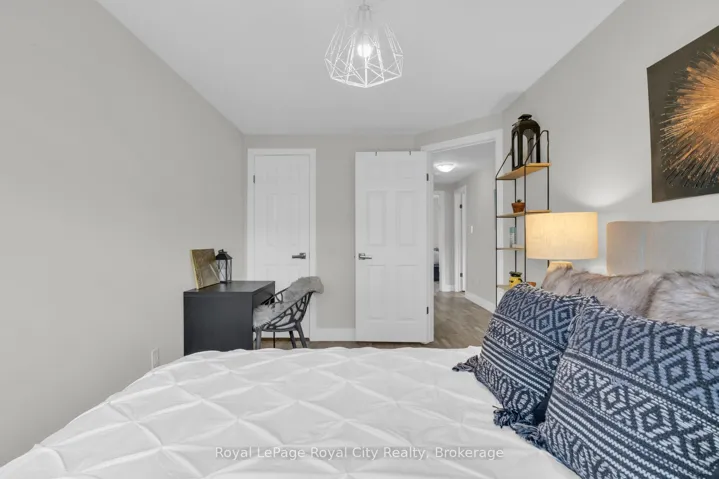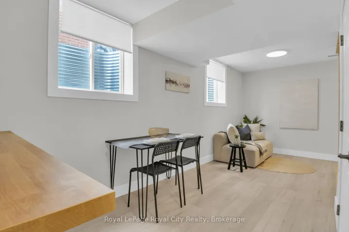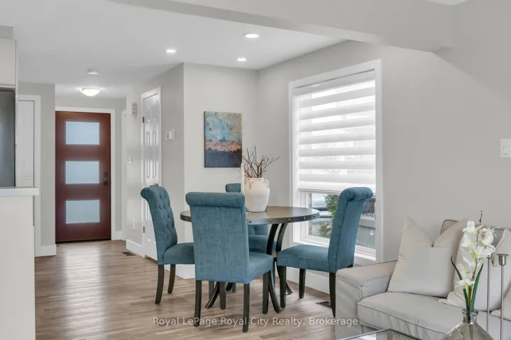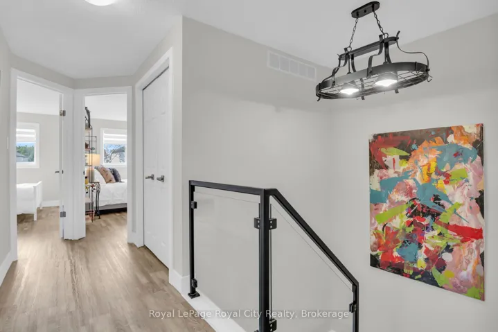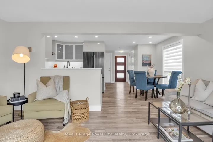 +"PublicRemarks": "Welcome to this beautifully upgraded semi-detached home in Guelph's sought-after West end, offering a lifestyle defined by comfort, convenience, and modern family living. Ideally located within walking distance to nearby schools, parks, and quick access to Highway 6 for commuters, Costco, this home blends thoughtful upgrades with a modern design. The exterior has been meaningfully improved with a newer roof, upgraded fiberglass front entry door, modern garage door, and a fully insulated garage. Inside, the home features a bright and cohesive design with durable luxury vinyl flooring throughout, updated trim and baseboards, modern lighting, and a warm neutral palette that enhances natural light, anchored by a beautiful gas fireplace. The main level is designed for effortless flow between living, dining, and kitchen spaces, creating an inviting environment for both family life and entertaining. At the heart of the home is a modern European-style kitchen, thoughtfully designed with high-gloss cabinetry, waterfall quartz countertops, a sleek designer backsplash, and premium black stainless steel appliances including an induction cooktop and built-in oven. The clean lines, minimalist finishes, and efficient layout create a space that is as functional as it is visually striking-perfect for everyday meals or hosting. A modern cast iron railing with glass staircase leads you upstairs, the bedrooms offer comfortable retreats with updated doors, ample closet space, modern hardware, zebra blinds, and USB-integrated outlets for added convenience. The bathrooms have been fully renovated with spa-inspired finishes including glass showers, rain shower systems, floating vanities, and elegant tile work, bringing a boutique hotel feel into daily living. The stylish finished basement extends the living space with excellent versatility, ideal for a rec room, home office, gym, or guest suite, complete with a kitchenette for added functionality. This home is simply move-in ready!"