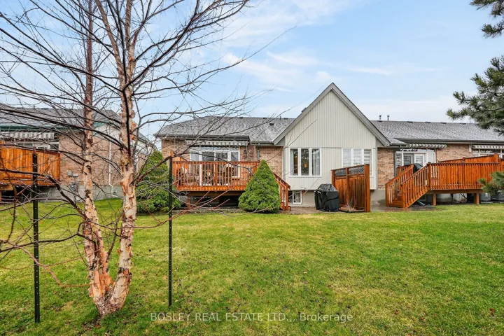 +"PublicRemarks": "Welcome to this charming bungalow-style end-unit condo townhouse in Winston Glen. This home offers 2 bedrooms, 3 bathrooms, a main-floor den and a downstairs office, providing versatile spaces for work, hobbies, or relaxation. Enjoy the convenience of main-floor laundry, a 2-piece bath, and a spacious primary bedroom overlooking the backyard, complete with a 4-piece ensuite (tub fitted for walk-in access). Hardwood floors on the main level, bay windows, a gas fireplace, and patio doors (2025) leading to the rear deck (2025) make it perfect for enjoying your time outdoors. The basement offers a generously sized recreational room, den, a 4-piece bathroom, and a utility/storage room. Enjoy the ease of low-maintenance condo living, where exterior upkeep is handled for you. Conveniently located close to Highway 406, Pen Centre, parks, and all essential amenities. Book your showing today!"