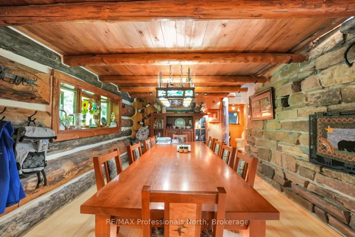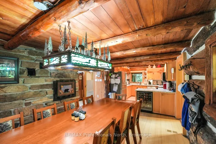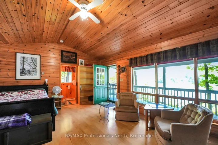 +"PublicRemarks": "Welcome to "Boomstick" - a truly iconic property set along the pristine shores of Kennisis Lake. Originally built as a historic hunt camp by the owners of Haliburton Forest, this one-of-a-kind retreat blends rich heritage with thoughtful modern updates, creating a lakeside experience unlike any other. Boasting an impressive 546 feet of sandy waterfront and coveted southwesterly exposure, you'll enjoy all-day sun and unforgettable sunset views stretching across the lake. The main residence offers five bedrooms and two bathrooms, where warm bamboo flooring, custom marquetry cabinetry, and a striking double-sided stone fireplace create a space that is both inviting and full of character. Designed for year-round comfort, the home is equipped with a Generac backup system and a new furnace for added peace of mind. Set on 1.98 acres-with the rare opportunity to acquire an additional 69.5 acres across the road-this property is a private natural playground. Winding trails, curated outdoor art, and serene forested surroundings make every corner feel intentional and inspiring. A private boat launch provides effortless access to Kennisis Lake, while the property's outbuildings elevate both function and recreation. These include a 16' x 32' insulated workshop, a 320 sq ft bunkie with composting toilet, and a spacious garage reimagined as an indoor pickleball court with second-level storage. "Boomstick" is more than a property-it's a legacy retreat, offering an extraordinary blend of history, privacy, and lakeside living in the heart of Haliburton County."