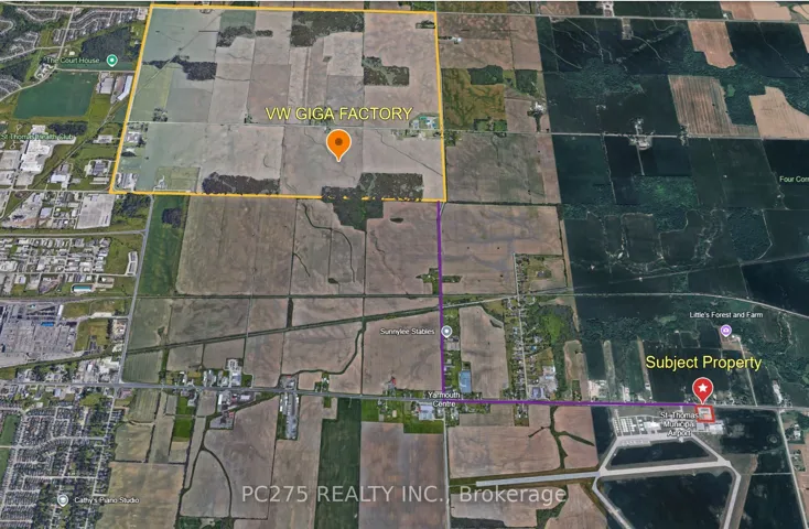 +"PublicRemarks": "Positioned in the path of one of Canada's largest industrial expansions, this 7,450 sq ft freestanding commercial building on over 2 acres offers a rare opportunity to establish a foothold in the rapidly emerging Southwest Ontario supply chain corridor. Located directly on Talbot Line (Hwy 3), adjacent to the St. Thomas Municipal Airport employment lands, and minutes from the new Volkswagen Power Co battery plant: a $7 billion development projected to reshape the regional economy. The 2004-built structure is currently configured as a modern automotive facility with multiple drive-in and grade-level bay access points, showroom and office space, and a large service area with mezzanine. The true value lies in its flexibility. C1-19 zoning permits a wide range of commercial and employment uses, making this property ideal for repositioning into a logistics hub, contractor base, parts distribution centre, or light industrial support facility. The expansive lot supports outdoor storage, fleet parking, and future site adaptation - an increasingly scarce feature this close to a major employment growth node. For operators and investors looking to establish early presence ahead of full market maturation, opportunities like this are limited. Full due diligence package available including Phase 1 Environmental, zoning details, and building specifications."