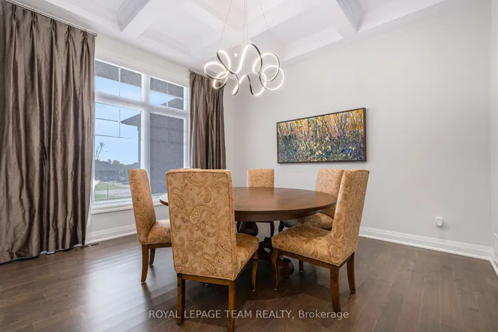 +"PublicRemarks": "Welcome to Maple Creek Estates. This stunning custom bungalow is situated on one of the few premium lots backing onto greenspace. Thoughtfully designed, the open concept layout is perfect for entertaining.The stunning kitchen features an oversized island, stainless steel appliances, granite counters overlooking the great room with gas fireplace. Hotel inspired bathrooms with custom cabinetry, granite tops and Brizo designer faucets. Generous bedrooms all with custom built closet storage. The lower level features a large entertainment space with wet bar, a full bath as well as a den that could be converted into a 4th bedroom.A fully insulated, heated and cooled 4-car garage with additional ceiling height and Swiss Trax flooring. Gorgeous outdoor living spaces including a fenced rear yard with interlock patio and hot tub, firepit area, custom shade sail structure and pond feature. Attention to detail is evident throughout. This home & grounds are ready for you to enjoy!"