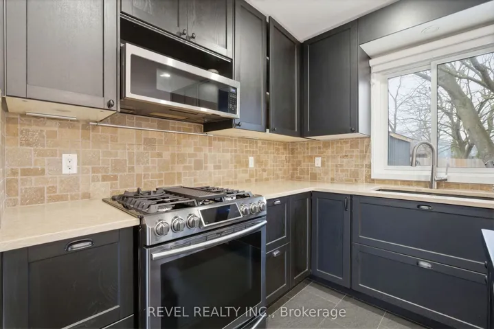+"PublicRemarks": "This beautifully updated four-level side split sits on nearly a quarter-acre in a highly desirable neighbourhood. The bright main floor features large windows, a living room with a gas fireplace, kitchen/dining room with a walkout to the backyard retreat. The Kitchen you'll find granite countertops, a movable island, and built-in appliances, including a gas stove. Upstairs, the second level offers three spacious bedrooms with hardwood flooring and an updated bathroom featuring a walk-in glass shower. The lower level provides a versatile living space, with a gas fireplace, large windows, and a luxurious bathroom with a soaker tub, walk-in shower, heated floors, and a walk-in closet. The basement level adds even more living space with a recreation room featuring a third gas fireplace, along with a large laundry, utility, and storage area.Outdoors, enjoy a fully fenced, mature yard designed for relaxation and hosting. Highlights include a deck with a built-in canopy and adjustable sunshade slats, a hot tub, a wood-fired sauna, and an outdoor shower perfect for entertaining family and friends. The setting offers a rare blend of convenience and quiet, with a small-town charm. Walking distance to Downtown St. Jacobs shops, restaurants, walking trails and more!"