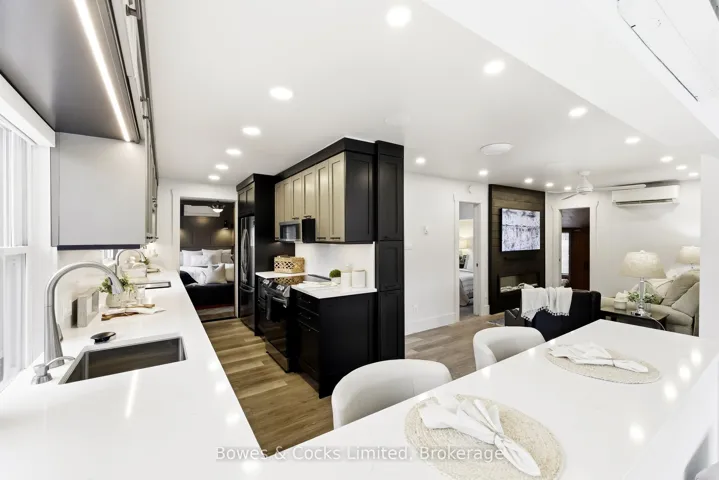 +"PublicRemarks": "Completely renovated four-season cottage with a detached bunkie on the pristine shores of Clear Lake. Situated on a municipally maintained road, this easily accessible three-bedroom retreat offers the perfect blend of comfort and simplicity for effortless waterfront living. The thoughtfully designed interior features a spacious primary bedroom with a walk-in closet, custom queen-sized bed with built-in storage, and matching end tables. The brand-new kitchen is equipped with quartz countertops and five newer stainless steel appliances, while the updated bathroom showcases a sleek glass walk-in shower and heated floors. Extensive upgrades include but are not limited to new flooring, hardboard siding, improved insulation, updated wiring and plumbing, and an energy-efficient heat pump with three heads for year-round heating and cooling. Step outside to enjoy the outdoor kitchen complete with a Weber BBQ and Green Egg smoker-ideal for entertaining. The property is being offered fully turnkey, including over $30,000 in furnishings, appliances, TVs, speakers, and sound systems-just bring your clothes and start enjoying. The detached 4 season bunkie adds valuable space for guests, complete with its own three-piece bathroom. Generous decking, private docking, and deep, clean waterfront make this an exceptional setting for enjoying everything Clear Lake has to offer. Conveniently located just a short walk to amenities at Young's Point General Store."