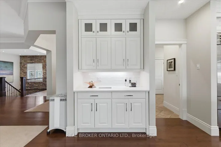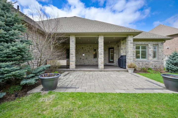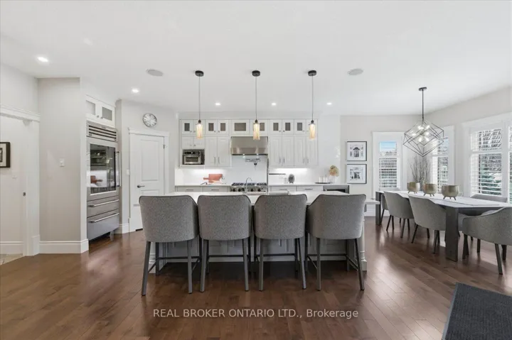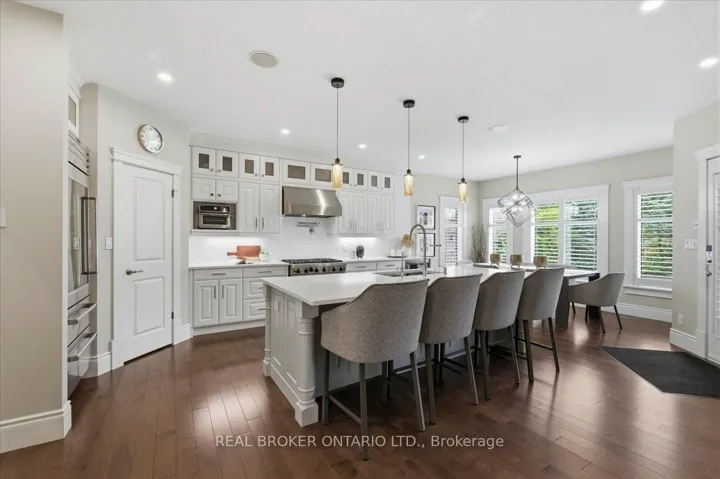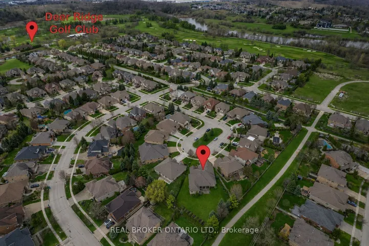 +"PublicRemarks": "Set on a quiet cul de sac in Deer Ridge Estates, 945 Riverstone Drive sits on an expansive pie-shaped lot of a third of an acre, where lots of this size, privacy, and no rear neighbours are rarely found in Deer Ridge Estates. Built entirely in stone, this bungalow offers over 5,200 sq ft of fully finished living space and presents with quiet confidence from the street, surrounded by mature landscaping. Inside, the home opens with 10 foot ceilings and a layout that flows naturally from one space to the next. The kitchen is the focal point of the main living area. A full 9 foot quartz island anchors the space, paired with custom cabinetry, a Sub Zero fridge, and a Viking six burner gas range. It connects directly to the dining area and main living space, where a stone fireplace and large windows overlook the backyard. The main level offers three well proportioned bedrooms, including a primary suite set apart with dual walk-in closets and a spacious ensuite with heated floors, double vanity, and soaker tub. The lower level is fully finished and thoughtfully designed as a natural extension of the home, with a large recreation area, guest suite, full bathroom, and wet bar. A covered stone porch extends the living space outdoors, designed for both dining and lounging, and opens to a fully fenced backyard enclosed with iron rod fencing, making full use of the third of an acre lot, framed by mature evergreens and complemented by raised garden beds. Steps to the Walter Bean Grand River Trail, minutes from Deer Ridge Golf Club, and with easy access to highways, restaurants, entertainment, and shopping, this is a one-of-a-kind offering in one of Kitchener's most established neighbourhoods."