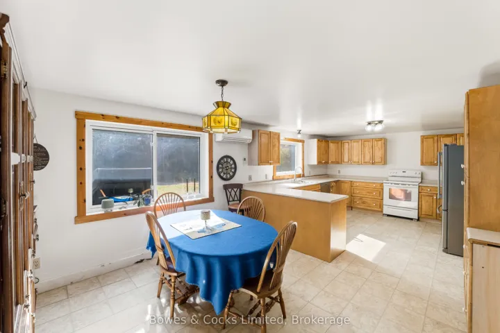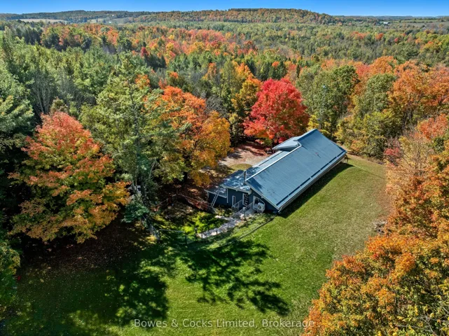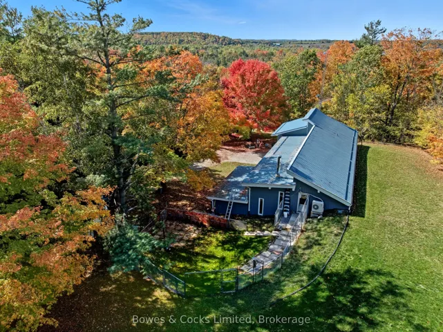 +"PublicRemarks": "The moment you turn in, you can feel it - you've arrived somewhere unlike anywhere else. On a quiet country road, a long winding driveway leads to a secluded retreat. More than sixty acres of fields, rolling hills, fruit trees, and forests unfold in every direction, threaded with private trails to wander. In the distance, the shimmer of Georgian Bay. Sunrises that take your breath away, star-filled skies at night, and views that feel limitless. At the heart of it all is a one-of-a-kind healthy home, lovingly restored using biological building principles and natural, eco-friendly materials. Solid hardwood floors run throughout, and natural light fills every corner of this four-bedroom, four-bathroom home. A wood-burning fireplace anchors the main living space, adding both warmth and atmosphere year-round. The kitchen is spacious and inviting, designed for gathering, while the bathrooms are dreamy in every way. The primary suite is a retreat of its own, complete with a four-piece ensuite, walk-in closet, lounge for relaxing, and a deck overlooking the property - an ideal spot for quiet evenings or comfortably welcoming in-laws and guests. From every room, you'll take in stunning views of the land and valley beyond. In winter, the land becomes your own private playground. Step outside for snowshoeing or Nordic skiing along the property's trails, or spend the day on the slopes at Beaver Valley, Georgian Peaks, and nearby ski hills. Even in the quiet of winter, the views remain expansive and the setting feels deeply peaceful. Practicality meets purpose with geothermal heating and cooling for efficiency, a two-car garage with a built-in workshop, and generous storage throughout. Though it feels worlds away, it's just minutes from Thornbury, Meaford, Georgian Bay, top schools, and local farm stores. It's a home that feels good to live in, inside and out. Simply put, this place is special."