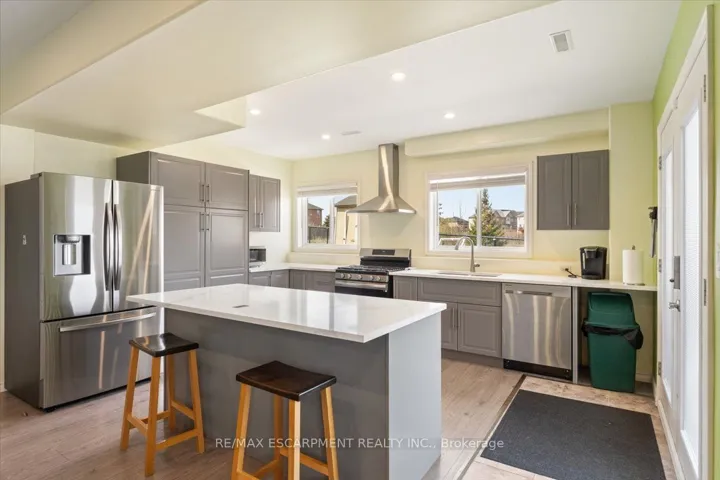 +"PublicRemarks": "Welcome to 66 Magnificent Way, a stunning raised bungalow in the heart of Binbrook that perfectly blends scale, privacy, and modern luxury. Situated on a massive 137' x 175' lot with no rear neighbors and a serene walking trail right at your doorstep, this property offers a rare sense of seclusion. The home boasts approximately 2,000 sq. ft. of bright, open-concept living space characterized by soaring ceilings and premium finishes. The main floor features a chef-inspired kitchen with a large island and stainless steel appliances, a spacious dining area, and a living room that walks out to an expansive deck overlooking your private oasis. With three generous bedrooms, including a primary suite with a private ensuite and convenient main-floor laundry, the layout is as functional as it is beautiful. Adding incredible value is the massive three-car garage, complete with a versatile loft space perfect for a home office or studio. The lower level is a fully self-contained walk-out suite, offering an additional three bedrooms, its own laundry, and a second open-concept kitchen and living area-ideal for multi-generational living or as a premium guest suite. Whether you're enjoying the view from the large back deck or exploring the nearby trails, this home offers an unparalleled lifestyle in a sought-after community."