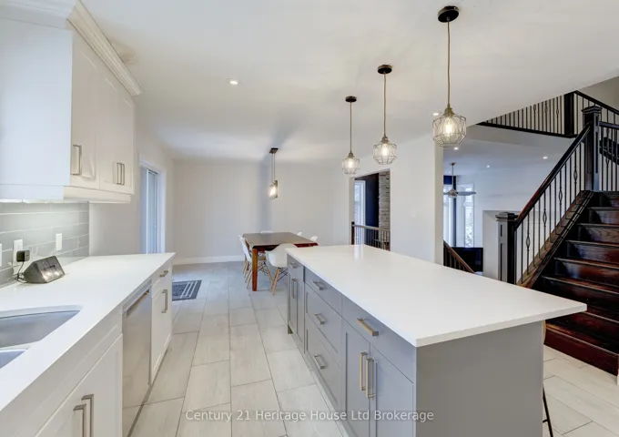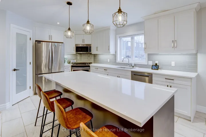 +"PublicRemarks": "Welcome to this fully renovated 3-bedroom upper-level home in the highly desirable Grove East neighborhood of Barrie. Bright and spacious, this unit features a well-designed layout that suits both families and working professionals.The main floor offers a generous living room with a large window that brings in plenty of natural light, along with a separate family or dining area. The modern kitchen is equipped with quartz countertops, ample cabinet space, and updated appliances. For added convenience, main floor laundry is also included.Upstairs, there are three well-sized bedrooms, including a primary bedroom with its own private ensuite. The additional bedrooms and bathrooms are thoughtfully designed to provide comfort and privacy.This unit comes with three parking spaces and includes garage access for the upper-level tenant.Ideally located near schools, parks, shopping, and public transit, with easy access to major routes and all essential amenities."