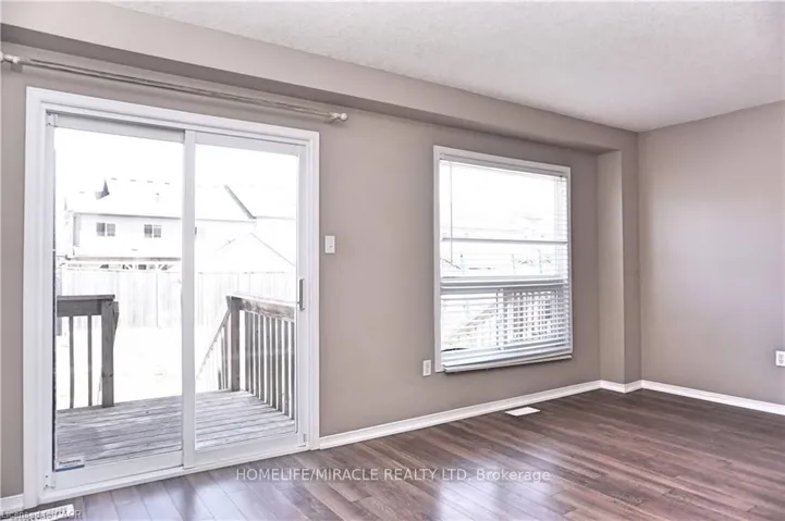 +"PublicRemarks": "Located in the heart of Huron Park, this well-kept freehold townhouse offers 1400 square feet of bright, open-concept living with no condo fees. The main floor features a spacious kitchen, dining area, and a large living room with a walkout to a wooden deck and a fully fenced backyard. Laminate flooring runs throughout both the main and second levels for a warm, cohesive feel.The second floor includes three generous bedrooms, and the basement offers excellent potential for finishing. Its layout allows for an easy separate-entrance setup, making it suitable for a home-based business, office, or an in-law or nanny suite.The home has been well maintained with many recent updates. The roof was replaced approximately three years ago, most windows were replaced three years ago, the fence was replaced two years ago, and the water softener is only two months old. The washer and dryer are also recent. At approximately 15 years old, the property offers modern construction with meaningful upgrades already completed.Set in a family-friendly neighbourhood close to parks, schools, trails, and all Huron Park amenities, this freehold home delivers outstanding value, flexibility, and long-term peace of mind."