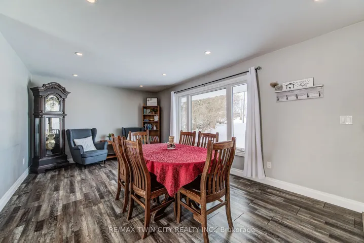 +"PublicRemarks": "Nicely updated bungalow with a walkout basement and a double garage on a beautiful one acre lot backing onto farmers fields. Recent quality renovation of kitchen, main bath and electrical throughout most of the home including pot lights. Open concept main floor with plenty of room for large family gatherings. Private primary bedroom with a view to the south. Finished walk out has a third bedroom and another bathroom, large laundry area and a super sized recreation room with a cozy gas fireplace and lots and lots of storage. Outside features plenty of parking, an above ground salt water pool, a chicken shed (40 chickens), and a huge yard for gardening and relaxing. Easy commute to K-W or Woodstock. Long list of upgrades including furnace replacement. This property checks off a lot of boxes so call your realtor to arrange a private viewing of this well priced home in the hamlet of Washington. Close to everywhere but far from ordinary."