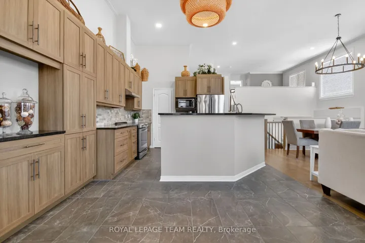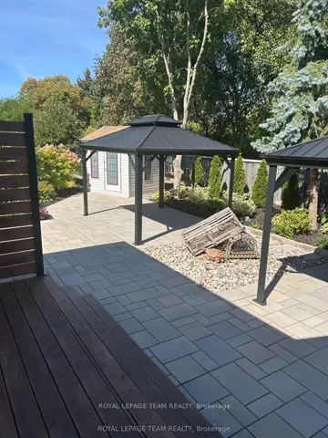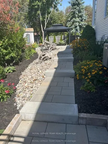 +"PublicRemarks": "Set on an oversized, pie-shaped lot on one of the neighbourhood's most desirable streets, this executive end-unit townhouse offers a rare combination of space, design, and location.The exterior makes a strong first impression with extensive interlock and well-established perennial gardens. Inside, a completely carpet-free, split-level layout is filled with natural light and designed for effortless flow. The living and dining areas are anchored by a refined fireplace, while the main floor solarium provides a flexible space for a home office, lounge, or quiet retreat.The kitchen is both stylish and functional, featuring granite countertops, abundant cabinetry, a walk-in pantry, and stainless steel appliances, including an induction stove and French door refrigerator. Upstairs, a versatile loft complements the primary suite and an additional generously sized bedroom. The finished lower level adds valuable living space with a large recreation room and second fireplace, an extra bedroom, laundry, and storage. A double-car garage with inside entry adds everyday convenience.The backyard is a standout feature - private, beautifully landscaped, and thoughtfully designed with extensive stonework and two gazebos, creating distinct areas for dining and relaxation. Ideally located just steps to shops, dining, and entertainment, this home offers an exceptional balance of comfort, style, and walkability. Lot Size: 27.82 x 118.05 x 68.61 x 108.06"