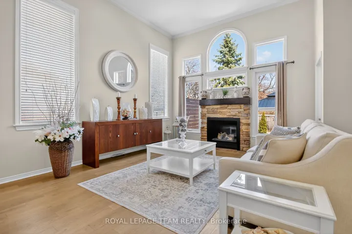 +"PublicRemarks": "Beautiful 2-bedroom, 2-bathroom bungalow with low-maintenance living with parking for 2 cars (1 garage & 1 on upgraded rubber driveway). The home features gleaming hardwood flooring throughout, tile in the eat-in kitchen, & impressive 9-foot ceilings that enhance the bright, open feel. The front entrance with closet leads into the formal living & dining room at the front of the home, highlighted by hardwood flooring and a large feature window allowing natural light to pour in. The eat-in kitchen offers excellent flow with a centre sit-up island overlooking the breakfast area and family room. Features include quartz countertops, stainless steel appliances, double sink, and ample cabinetry including pantry. The family room is warm and inviting with a cathedral ceiling, gas fireplace, and four windows that brighten the space. A walk-out from the kitchen leads to the backyard. Off the kitchen is the mudroom & laundry space that provides tile flooring, access to the garage, large double closet & an additional walk-out to the backyard. The spacious primary suite features a tray ceiling, walk-in closet, large window, & 5pc ensuite with deep soaker tub including a handheld shower head, 2 sinks, and separate glassed shower. The second bedroom is generously sized with two arched windows & closet space. Hardwood stairs lead to the unfinished basement, offering great potential to create additional living space with the high ceiling height, open space and rough-in for an additional bathroom. Enjoy easy maintenance with turf in both the front & backyard, plus a private deck space to relax outdoors. Some notable features include; Shingles (2020), Furnace (2021), AC (2021), Rubber Driveway, Turf Landscaping, Hardwood Flooring, and Whirlpool stainless steel appliances. Conveniently located within walking distance to grocery stores, restaurants, shopping, church, parks & more. Common Elements fee of $155/Mth For Snow Removal, Garbage Pickup, Common Elements Maintenance."