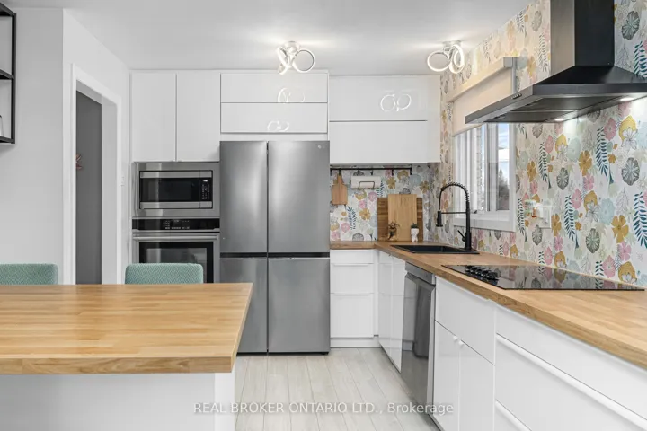+"PublicRemarks": "Tucked away on a quiet, family-friendly street in Carleton Place, this bright 4-bedroom, 2-bath hi-ranch bungalow blends modern comfort with extensive recent updates that offer long-term peace of mind. The main level features an open-concept living space with a fully renovated kitchen (2024) including new appliances, updated flooring (2024), new light fixtures (2024), and fresh interior paint (2025). The kitchen island is not secured and can be removed if desired. Three bedrooms and a refreshed full bath complete the level.The lower level offers a spacious rec room, a fourth bedroom with private 3-piece ensuite, and a utility/laundry room with storage; basement carpet replaced in 2025.Between 2022-2026, the property has seen significant improvements including a metal roof with new insulation (2024) and transferable 50-year warranty, rebuilt insulated and wired detached garage (2024), front and rear landscaping (2023), gazebo (2023), side deck (2022), permanent exterior lighting, above-ground pool installed in 2024 on a removable styrofoam base, and a new hot water tank (2026). The above-ground pool can be removed at the Seller's expense if desired.Outdoors, the fully fenced yard offers space for play, relaxing and entertaining, all within a short stroll to local shops, pubs, parks, and scenic trails - delivering small-town charm with everyday convenience. Some photos are virtually enhanced to depict the property without snow; landscaping and yard details may vary from actual conditions."
