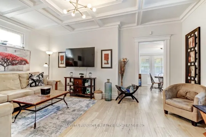 +"PublicRemarks": "Welcome to 9 Sycamore Street, a spacious and stylish yellow brick home that beautifully blends timeless character with thoughtful modern upgrades. With 3 bedrooms, 1.5 baths, and an inviting layout, this two-storey gem offers both comfort and versatility.Step through the classic wooden front door into a bright main level featuring high ceilings, elegant trim, and updated flooring and light fixtures throughout. Just off the foyer, a stunning stained-glass window casts warm light into a flexible front room ideal as a formal dining space, cozy office, or reading nook. French doors lead into the adjoining living room, which impresses with rich coffered wood ceilings and an airy layout perfect for both everyday living and entertaining. At the heart of the home, the modern kitchen showcases custom cabinetry, quartz countertops, a sleek backsplash, stainless steel appliances, and a charming breakfast nook with views of the backyard. A stylish two-piece bath and convenient main-floor laundry area complete the main level, which opens directly onto a brand-new backyard deck, perfect for outdoor dining and summer gatherings. The fully fenced yard offers privacy, space to garden or play, and is already equipped for a hot tub. Upstairs, you'll find three comfortable bedrooms and a full 4-piece bathroom. The clean basement provides generous storage and potential for a workshop, hobby space, or future living area. Located just steps from Silverwood Park & Pool and close to major routes, schools, and everyday amenities, this move-in-ready home is an ideal fit for first-time buyers or families looking for charm, convenience, and lasting value."