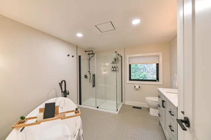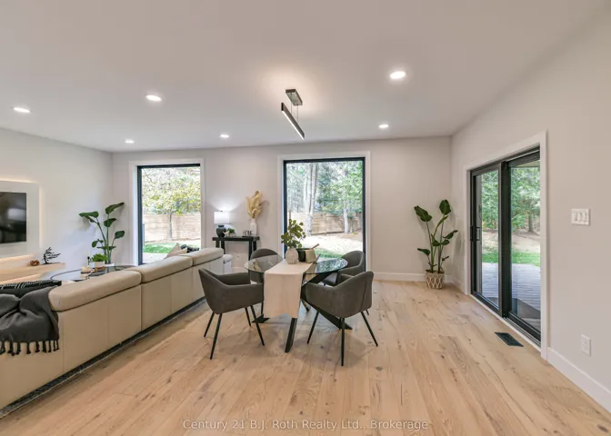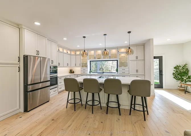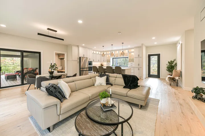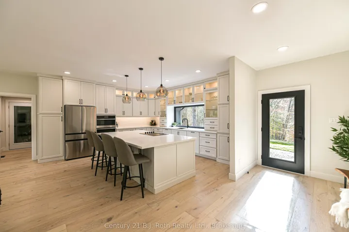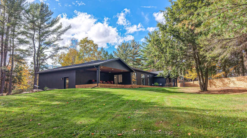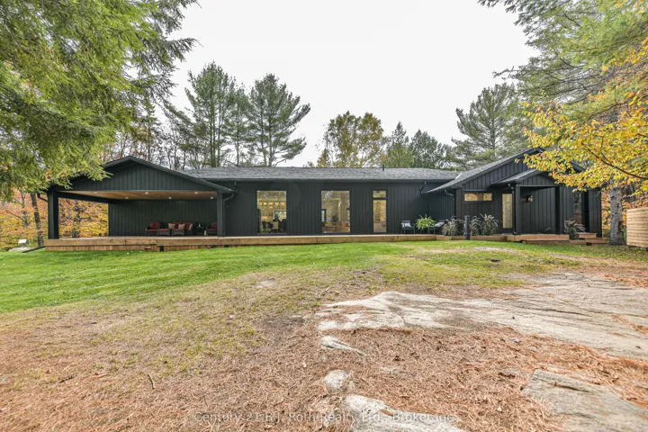+"PublicRemarks": "In the prestigious community of Huntsville, this home is your gateway to a dynamic lifestyle, complete with trendy restaurants, parks and cultural hotspots. A striking blend of luxury and modern design set on 4.3 acres of pure treed serenity. Enjoy over 2000 sq. ft of one floor living, this bungalow has been tastefully renovated with sleek finishes such as engineered hardwood throughout and floor to ceiling windows that flood the space with natural light. Step onto your covered back deck and enjoy your morning coffee surrounded by breathtaking views and peaceful wildlife. Some major upgrades include 1100 sq ft addition with a heated double car garage, new septic system, furnace, air conditioning, HRV system, encapsulated crawl space, heated water line from the well, kitchen, bathrooms, windows, doors, covered deck, eaves, soffit, facia, roof, siding, property grading and new crushed granite circular driveway. Sit back, relax and enjoy this home for years to come. Don't miss your chance to own this one-of-a-kind sanctuary - book your private tour today!"